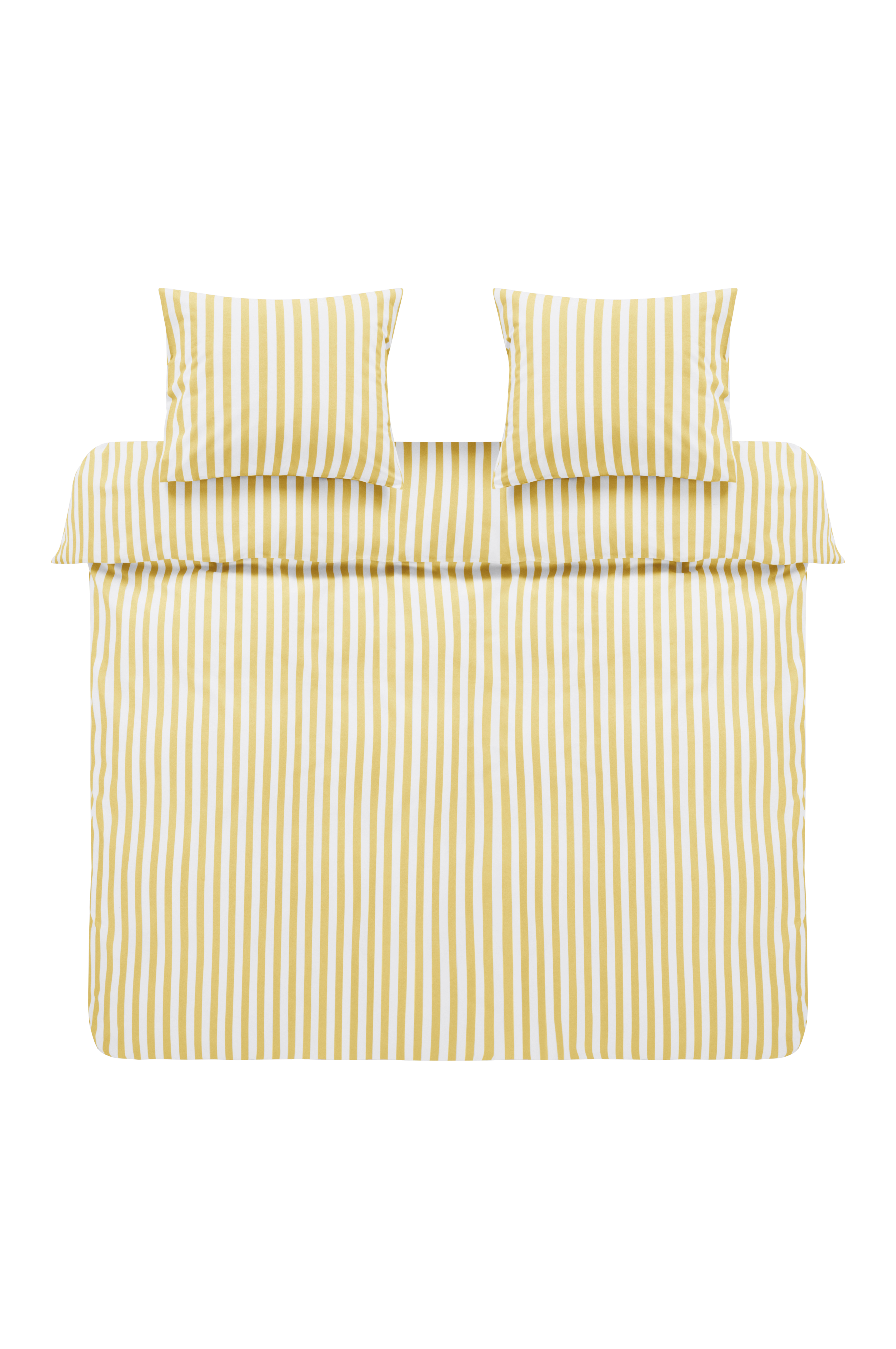 Smalrandigt påslakanset med ett extrabrett påslakan och två örngott i ekologisk bomull. De klassiska ränderna fungerar lika bra till liten som stor. Tyget har ett behagligt tryck, bomull är svalt och skönt mot huden, och känslan att krypa ner i en nybäddad säng är svårslagen. Randmönstret är tryckt i klara, glada färger mixat med varannan rand vit. Öppning i övre hörnen på påslakanet, som underlättar att trä påslakanet över täcket. Trådtäthet på 144 tc. (Trådtätheten talar om antalet trådar, thread counts, per kvadrattum i ett tyg. Ju högre trådtäthet desto högre kvalité.)