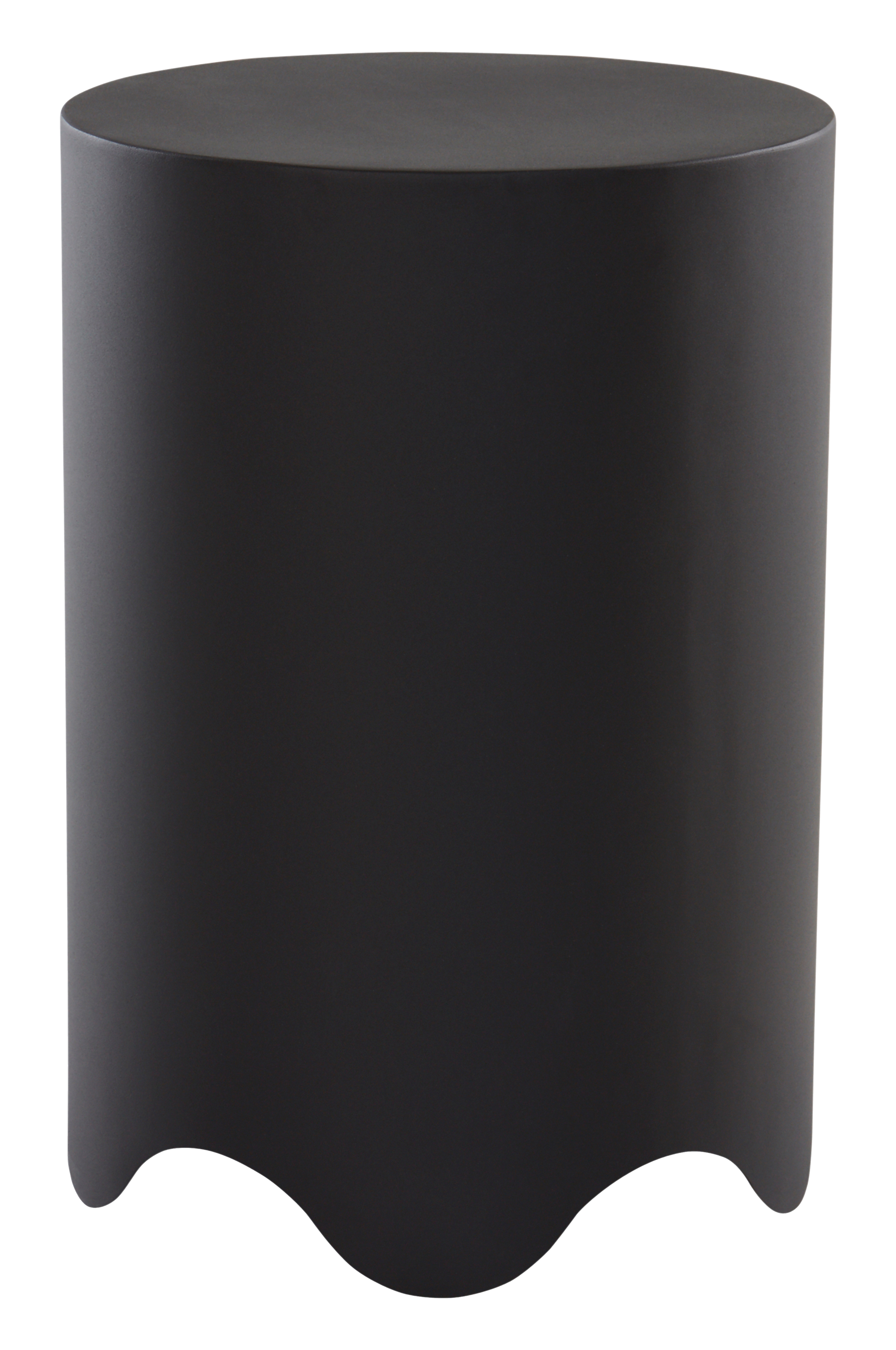 Runt sidobord av järn med läcker, vågad kant nertill. Ytan har pulverlackerats med matt finish. Bordet känns lekfullt och ger energi till ditt möblemang.