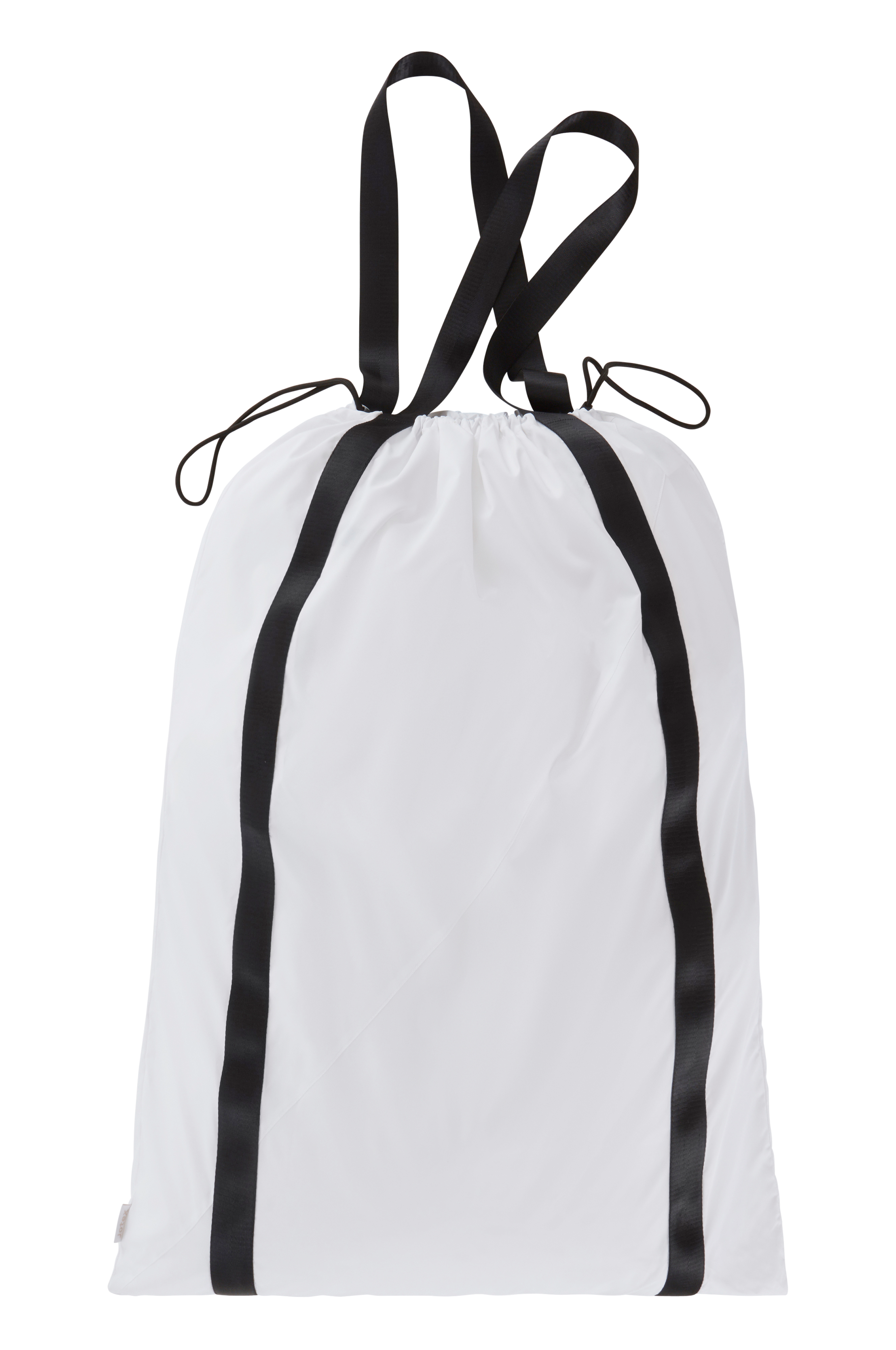 Tvättpåse av polyamid varav hälften kommer från återvunnet material. Den är vattenavvisande genom en för miljön bättre behandling. Den har handtag så den är lätt att bära till tvättstugan eller ha med på resan och stängning sker med dragsko.