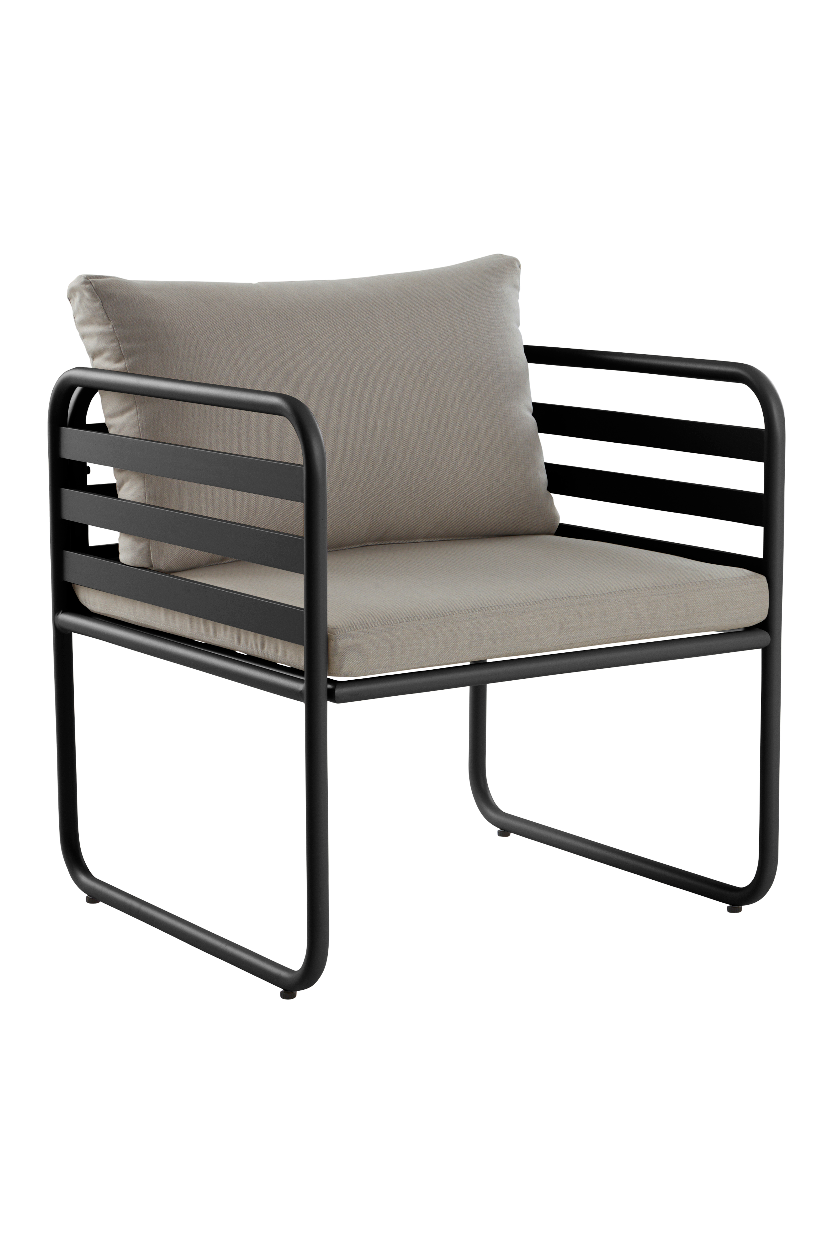 Loungestol tillverkad i aluminium med pulverlackerad yta. CADIZ är en nätt och smidig möbelserie för utomhusbruk och tanken är att du ska kunna möblera mysigt även på mindre yta. CADIZ är perfekt på balkongen i stan eller på den lilla stenläggningen utanför torpet på landet. Designen är stilren där rakt möter rundat i skön mix. Stolen har en mjukstoppad sittdyna och en bekväm ryggkudde med polyesterklädsel. Klädseln är tålig med slitstyrka på 30000 Martindale. Aluminium är ett praktiskt material utomhus, som tål väder och vind och rostar inte. Den matta färgen gör att metallen inte bländar i solsken. Viss montering krävs. Monteringsanvisning medföljer.