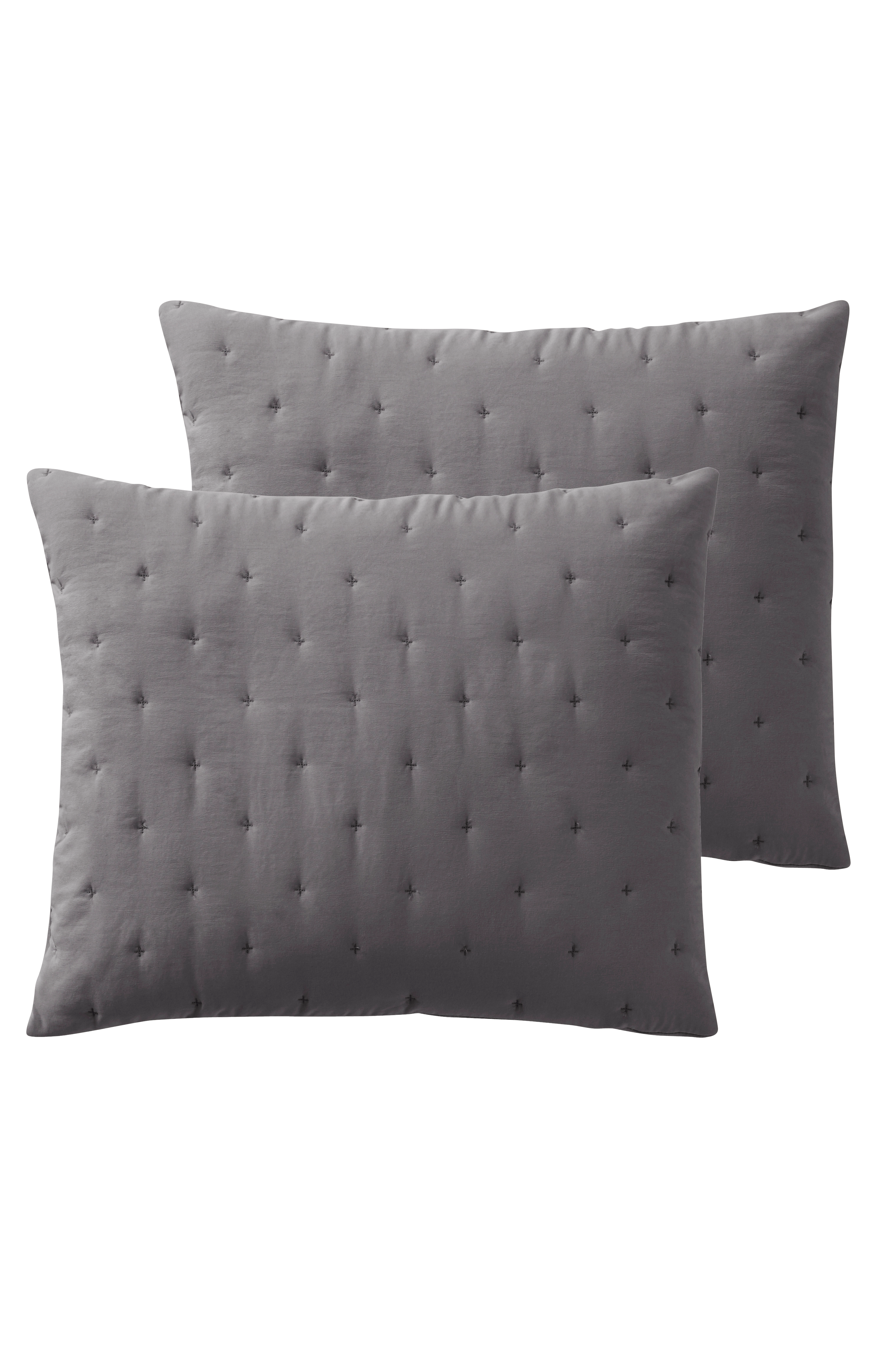 2-pack kuddfodral sytt i mjuk polyester som tvättats för att få en skön känsla. Kuddfodralen har enkel quiltning av broderade små kryss som bildar ett diskret mönster på framsidan. Tyget har en lätt vaddering som hålls på plats av quiltningen. Baksidan är slät. Dold dragkedja på baksidan.