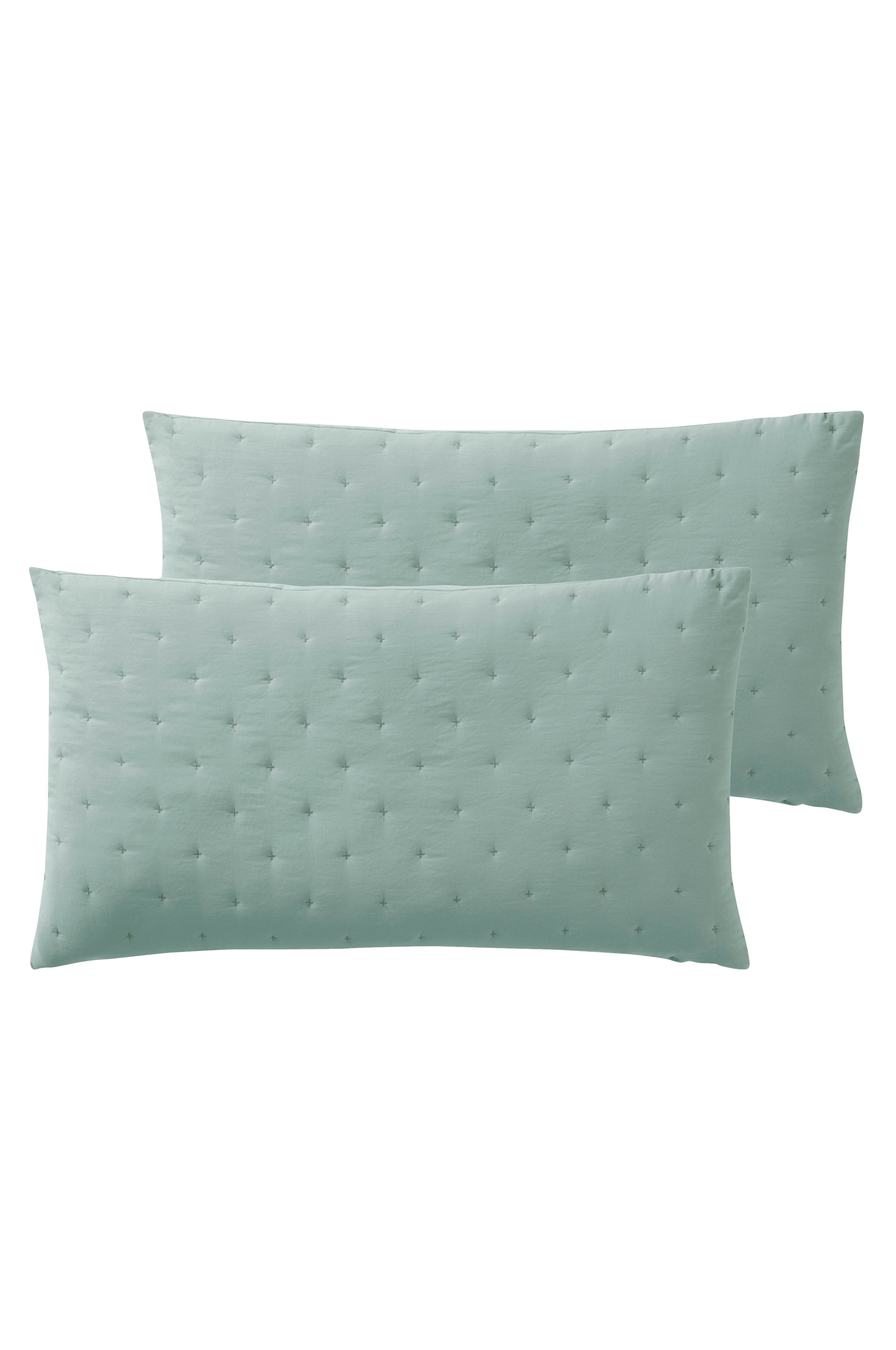 2-pack kuddfodral sytt i mjuk polyester som tvättats för att få en skön känsla. Kuddfodralen har enkel quiltning av broderade små kryss som bildar ett diskret mönster på framsidan. Tyget har en lätt vaddering som hålls på plats av quiltningen. Baksidan är slät. Dold dragkedja på baksidan.
