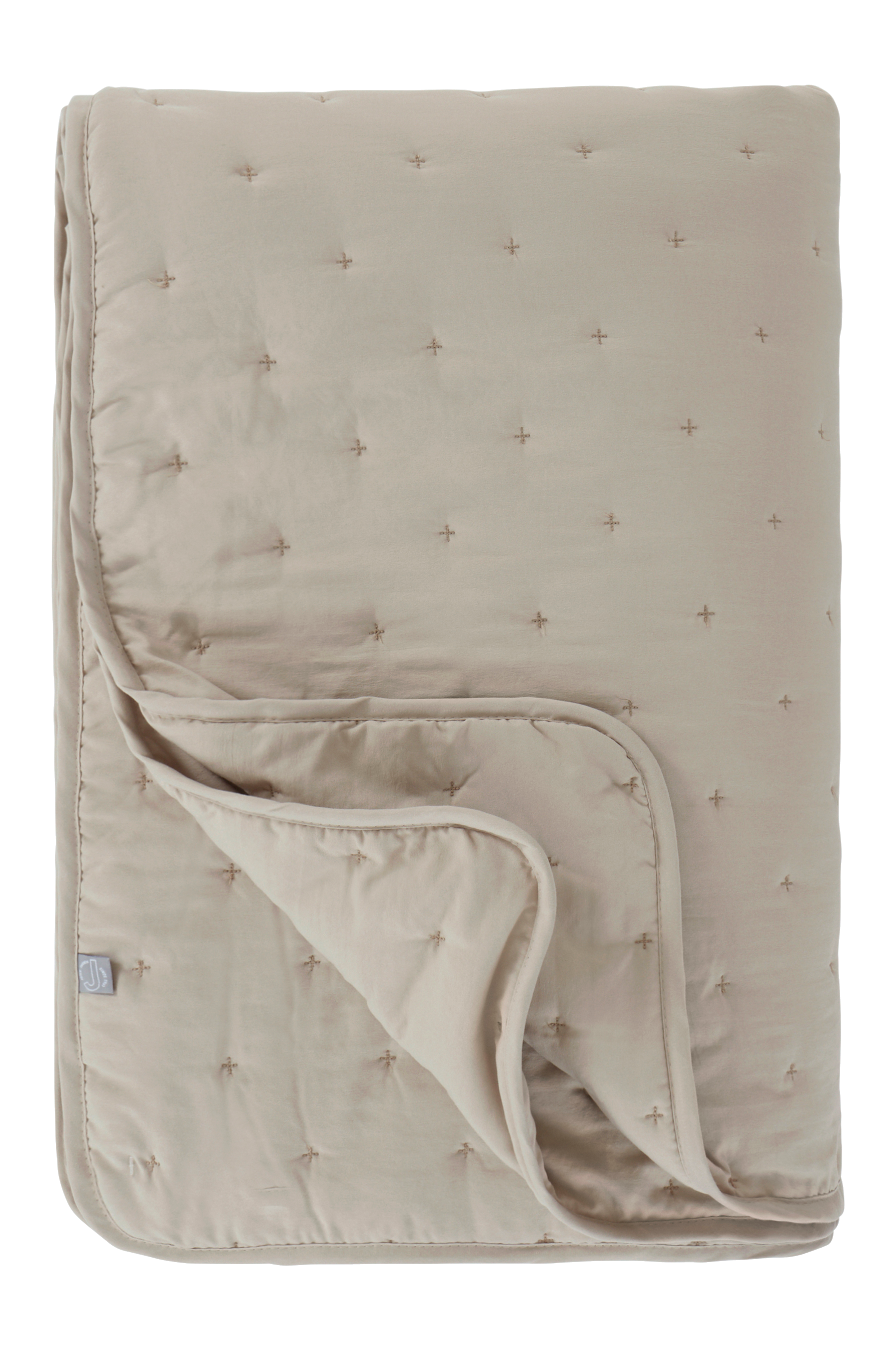 Underbart mjuk, lagom stor och tidlös överkast i neutral färg som passar både i barnens och vuxnas rum.