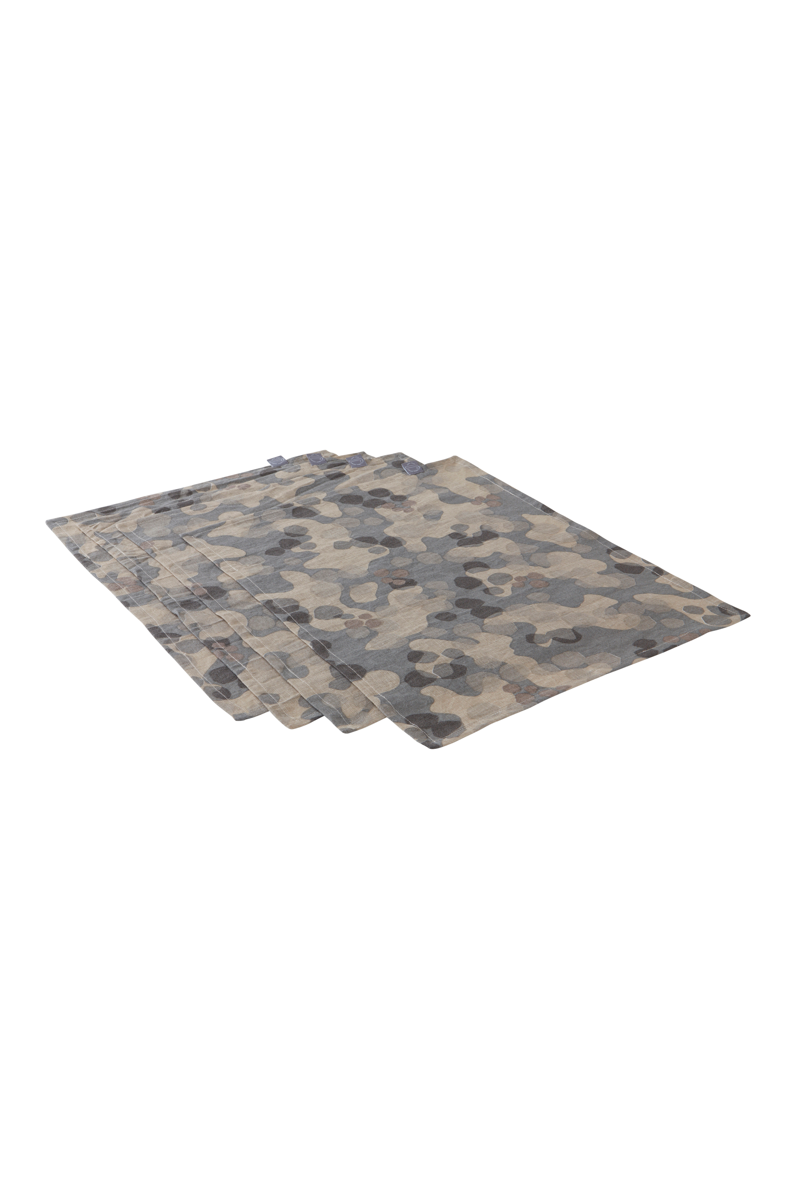 4-pack bordstabletter av naturligt och behagligt linne med tryckt mönster som designats av Maria Carlberg. Den sköna linnekvalitén har tvättats för att bli härligt mjuk.