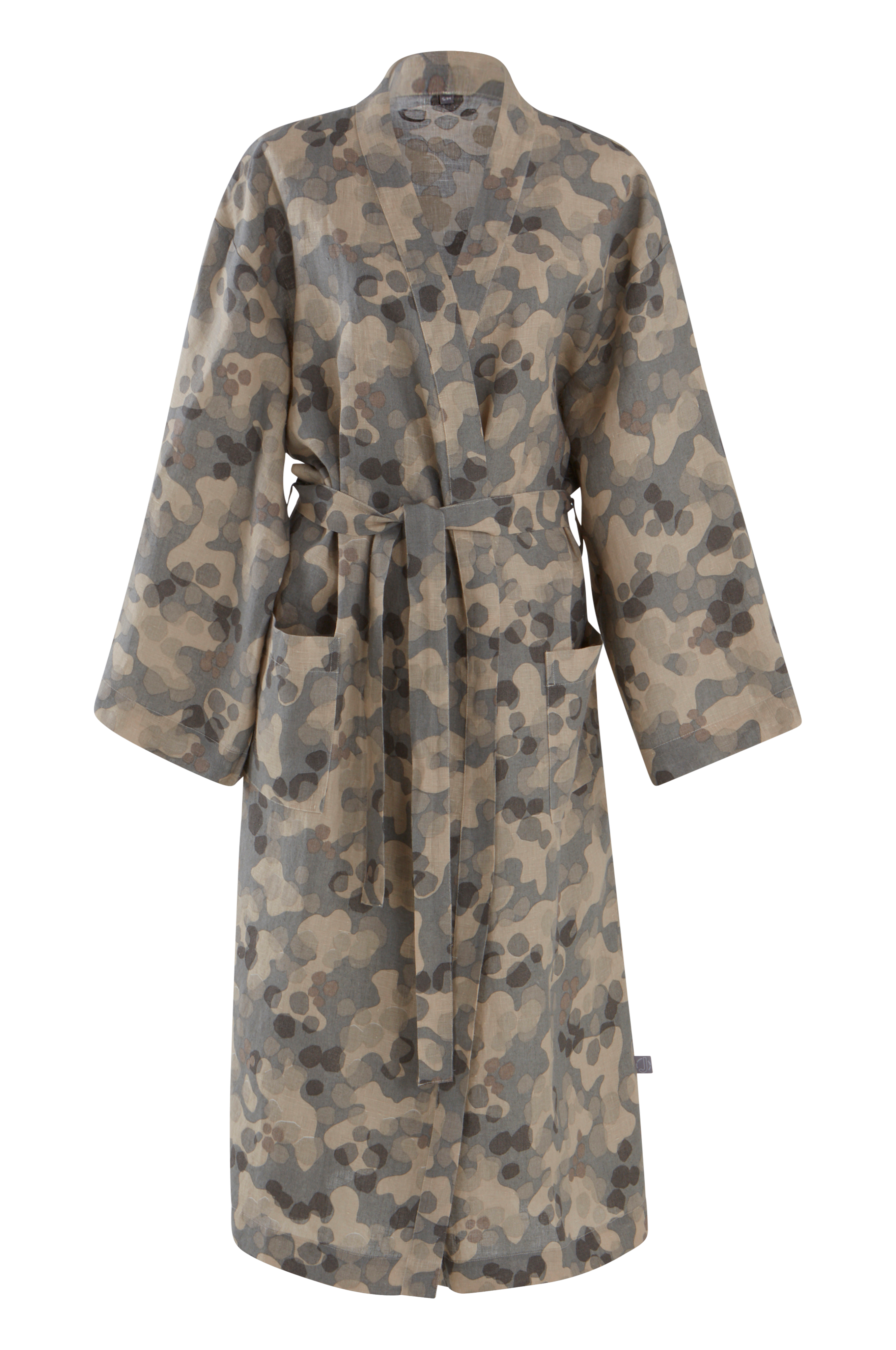 Kimono i lång modell av naturligt och behagligt linne med tryckt mönster som designats av Maria Carlberg. Den sköna linnekvalitén har tvättats för att bli härligt mjuk och skön. Mysig modell knytskärp i midjan och två framfickor.