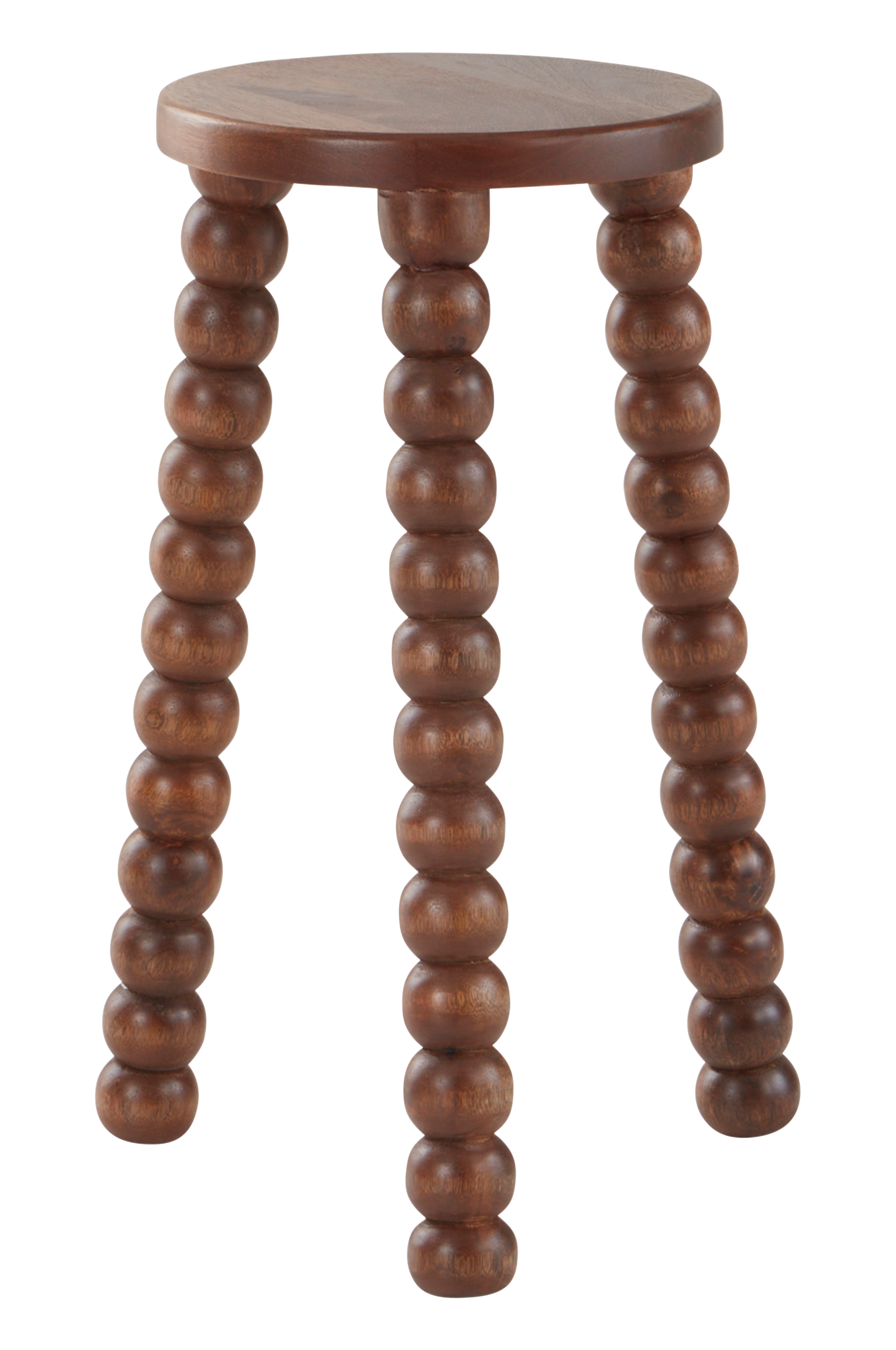 Vi presenterar sidobordet CARBIS, tillverkat av mörkbetsat massivt mangoträ med en elegant mörkbrun finish. Bordet har en bordsskiva med en diameter på 25 cm och stöds av tre elegant formade ben.