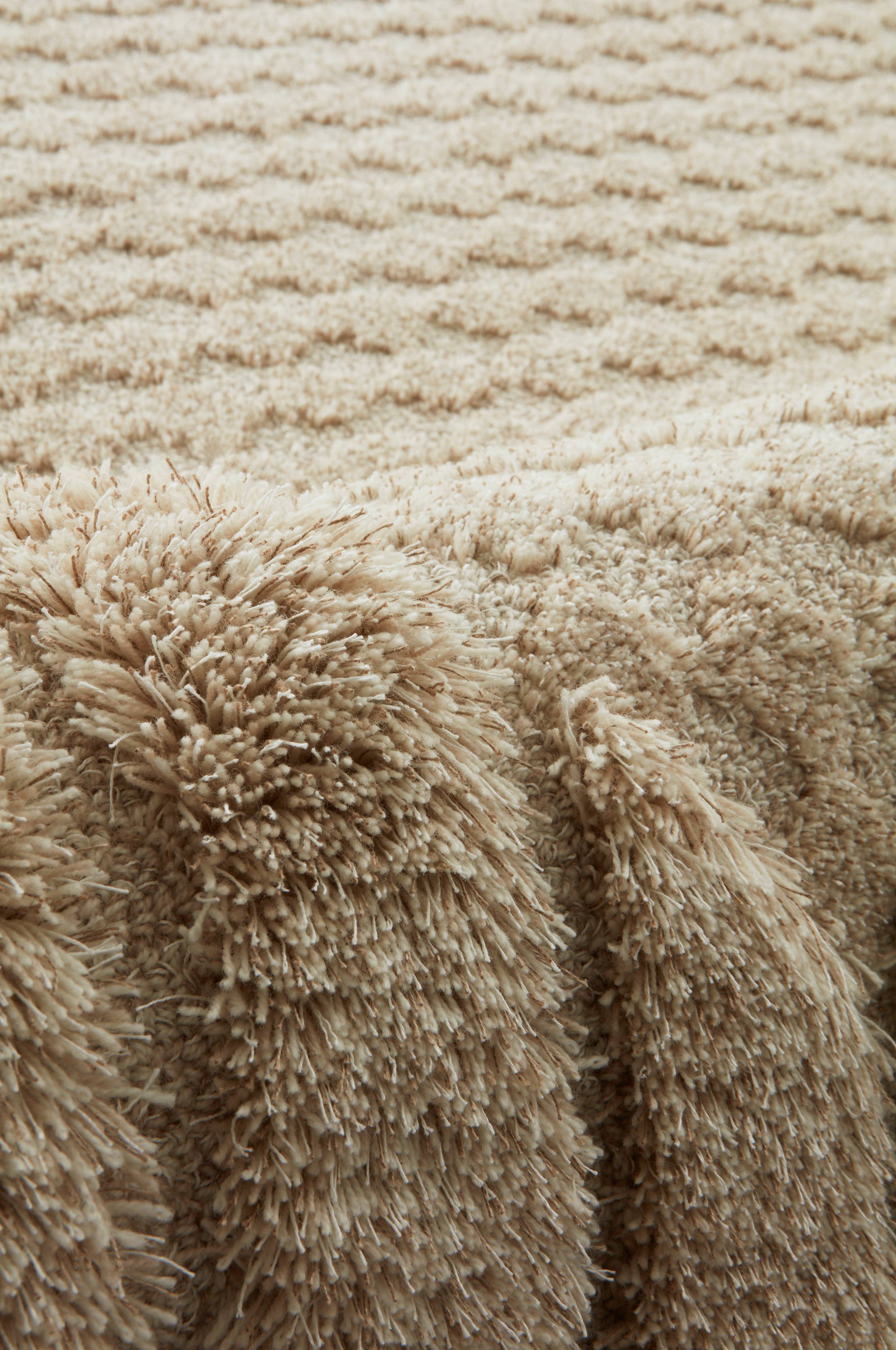 Garnet är en blandning av ull och lin som går i sandiga toner vilket gör mattan melerad. Den är tuftad i en tredimensionell teknik med lång luggkant och lägre mitt, på så vis skapas ett rutmönster. Ullen kommer från Nya Zealand och linet kommer från Frankrike. Både ull och lin är fina naturmaterial, ullen värmer på ett skönt sätt och är naturligt smutsavvisande.