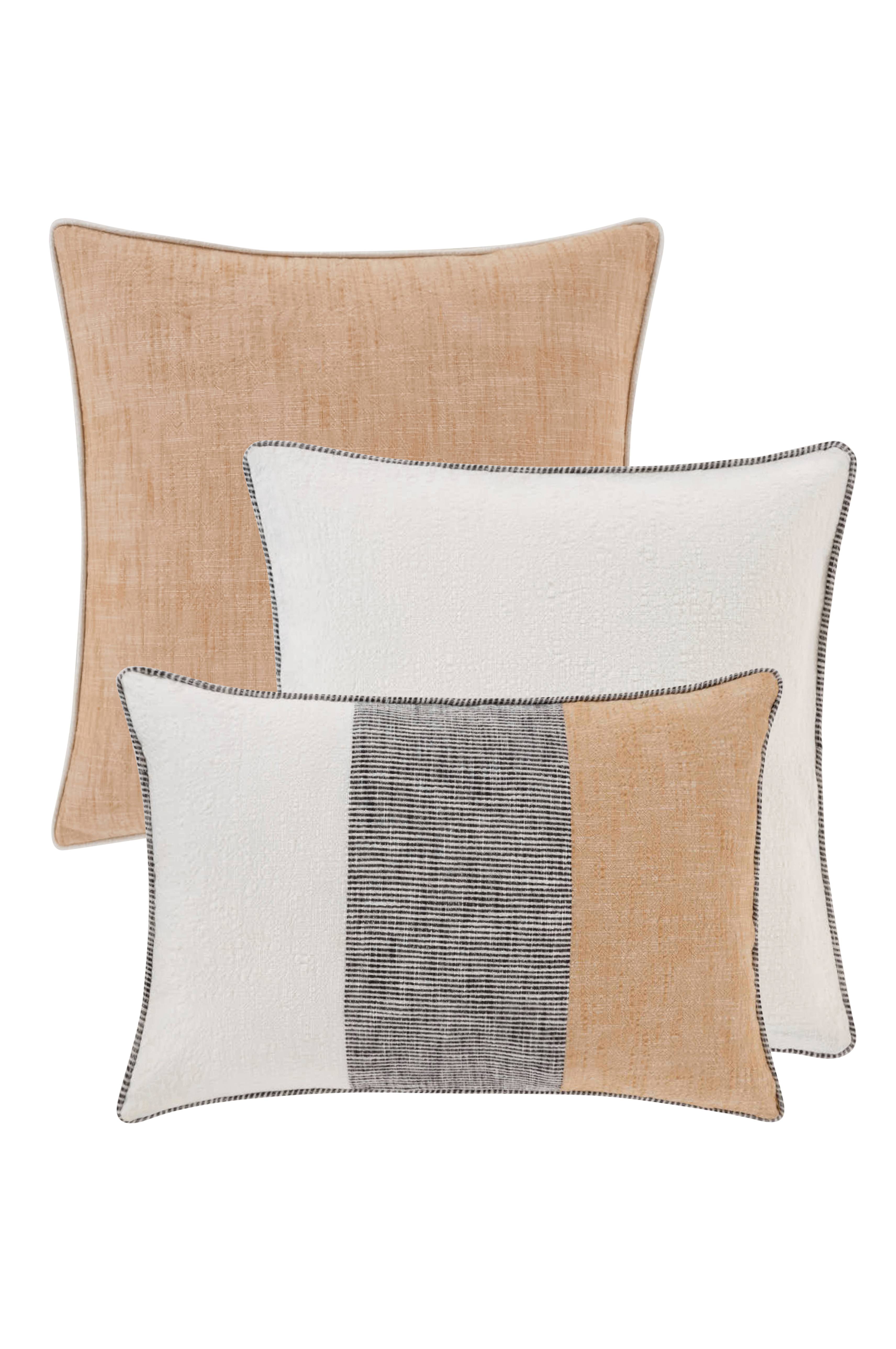 Kuddfodralssetet CHAMBRAY tillför modern charm till ditt rum med sin två enfärgade och en randig design. Denna 3-delade uppsättning ger textur och djup, perfekt för att modernisera din inredning med en trendig twist.