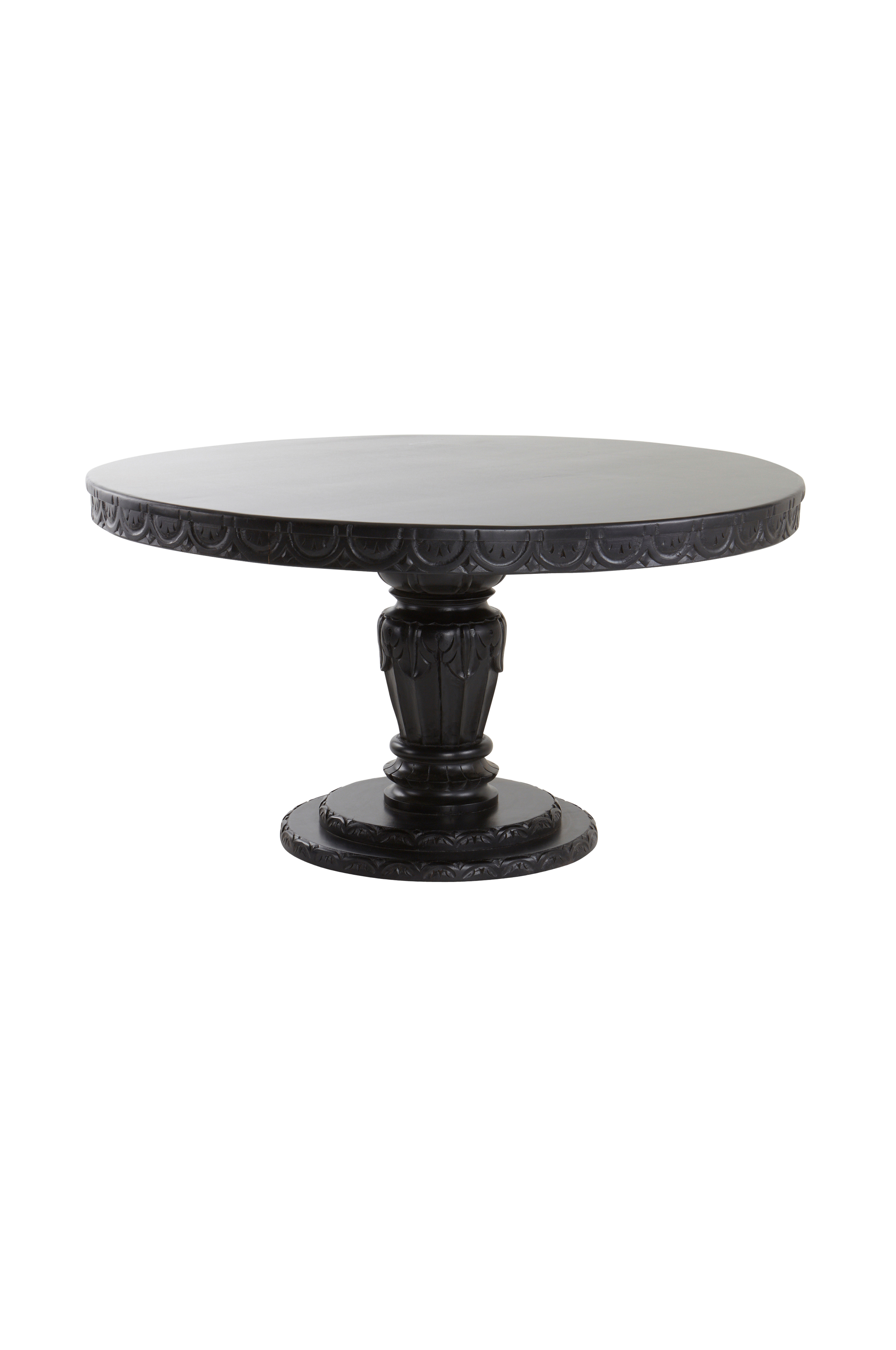 Runt matbord av massivt mangoträ. Fantastiskt vackert, handgjort matbord där all vacker ornamentering är snidad för hand. Att bjuda till middag kring ett runt bord är extra trevligt och ger gemenskap med hela sällskapet. Bordet är mycket kraftigt och fint, ett riktigt hantverk. Pelarbord är en praktisk modell där benen aldrig är i vägen när du placerar stolarna. Viss avvikelse kan förekomma eftersom möbeln är handgjord. Viss montering krävs. Monteringsanvisning medföljer.