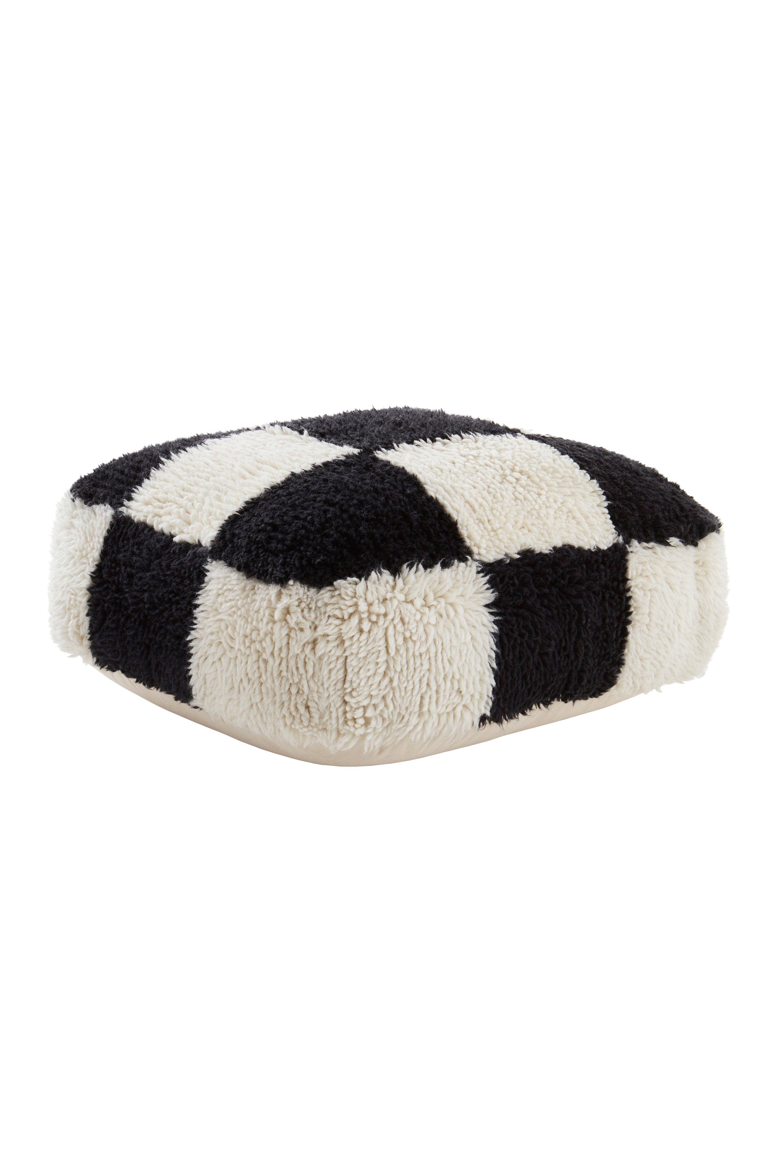 En stor och härlig, fyrkantig sittpuff med yttertyg som en skön ryamatta. Yttertyget är handtuftat och luggen är av mjuk och varm ull, tyget är av bomull. Mot golvet står puffen på ett vävt tyg, ingen lugg. Fyllningen är av cellplastkulor och den formar sig bekvämt när du slår dig ner. Tyg 1600-1800 g/m². Lugghöjd 2,8-3 cm.