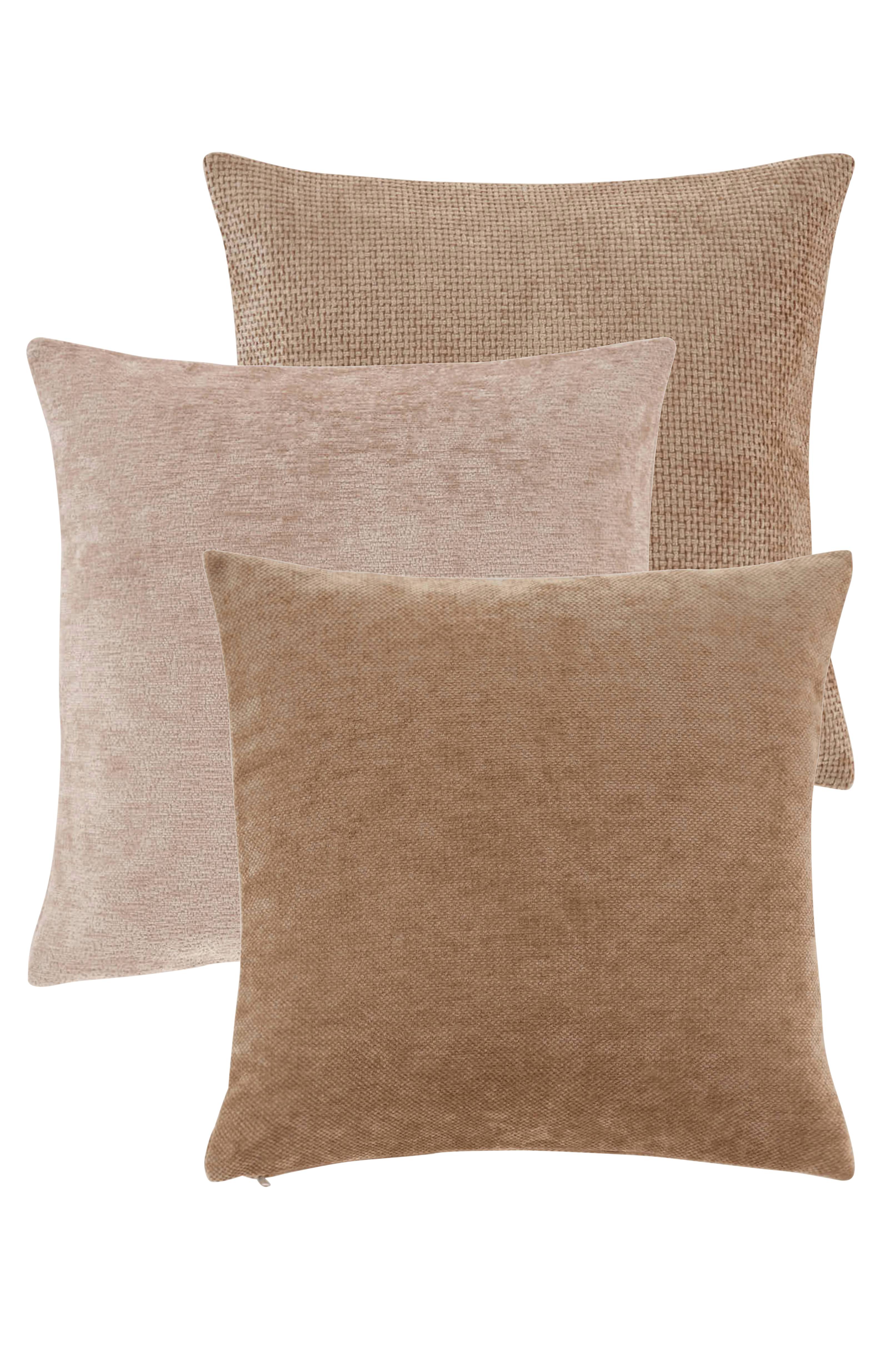 CHLOE kuddfodralsset ger stil till ditt rum med tre koordinerande tyger. Dessa kuddfodral är perfekta för en modern touch och blandar texturer och nyanser, vilket ger din soffa eller säng värme och komfort.