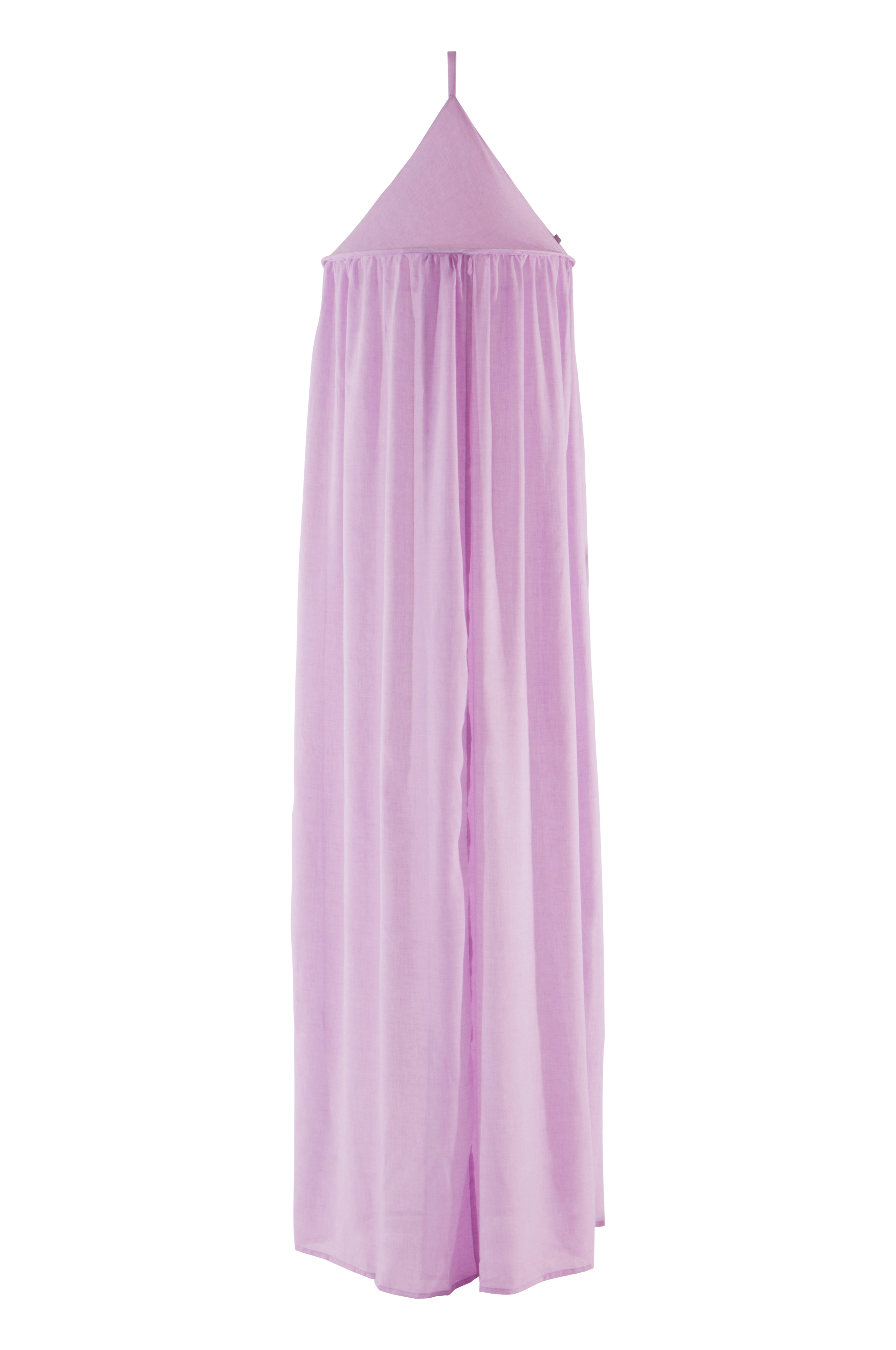 Sänghimmel tillverkad i mjuk bomullsblandning som ger ett fint fall. Denna sänghimmel är öppen både i framkant och bakkant, vilket är en fördel om du vill ha en sänglampa på väggen bakom sängen. Fäst sänghimlen i barnrummet för att skapa en mysig och ombonad atmosfär över barnsängen.