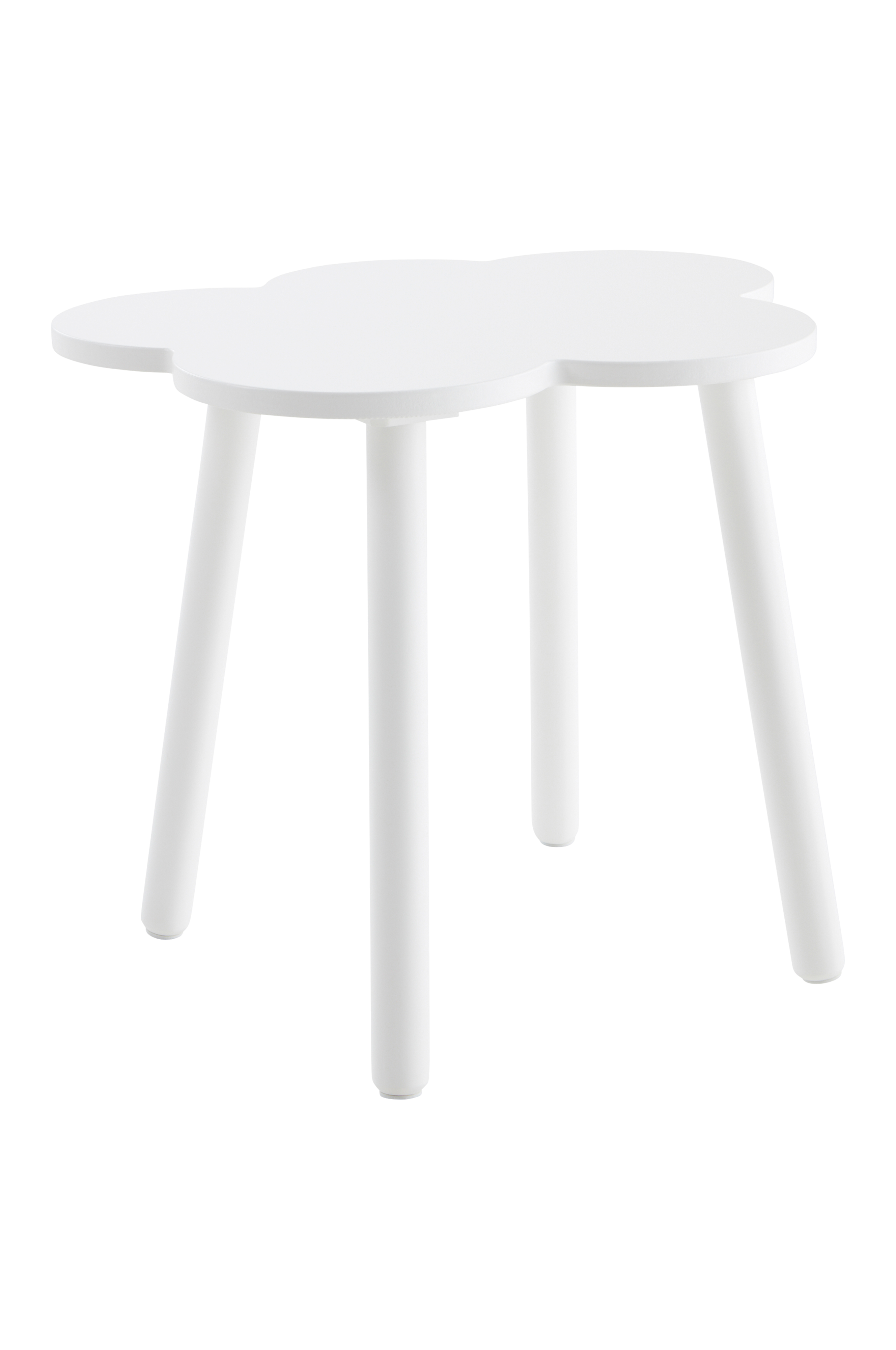 Målat barnbord med ben av furu och bordsskiva av MDF. Bordsskivan är molnformad och benen utställda vilket gör bordet stabilare. Viss montering krävs. Monteringsanvisning medföljer.