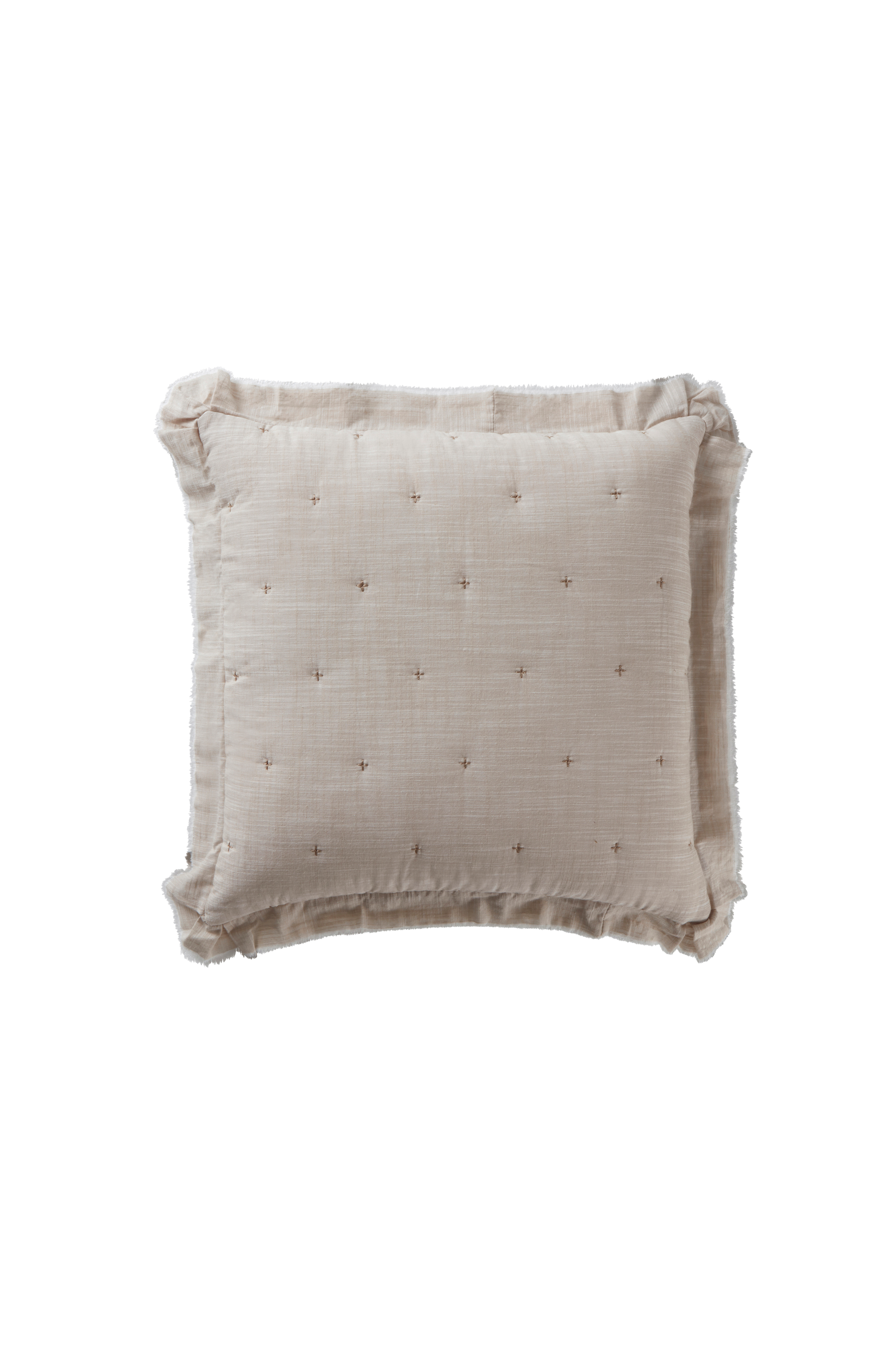 1-pack kuddfodral sytt i mjuk bomullslub som är plaggtvättad vilket innebär att det har tvättas efter sömnad. Slubeffekten ger tyget viss struktur. Tyget är snyggt melerat och lätt vadderat med enkel quiltning av broderade prickar som bildar ett diskret mönster på framsidan. Vinge med rå kant runtom förstärker den mjuka stilen. Kuddfodralets baksida är av bomull. Dragkedja i nederkant.