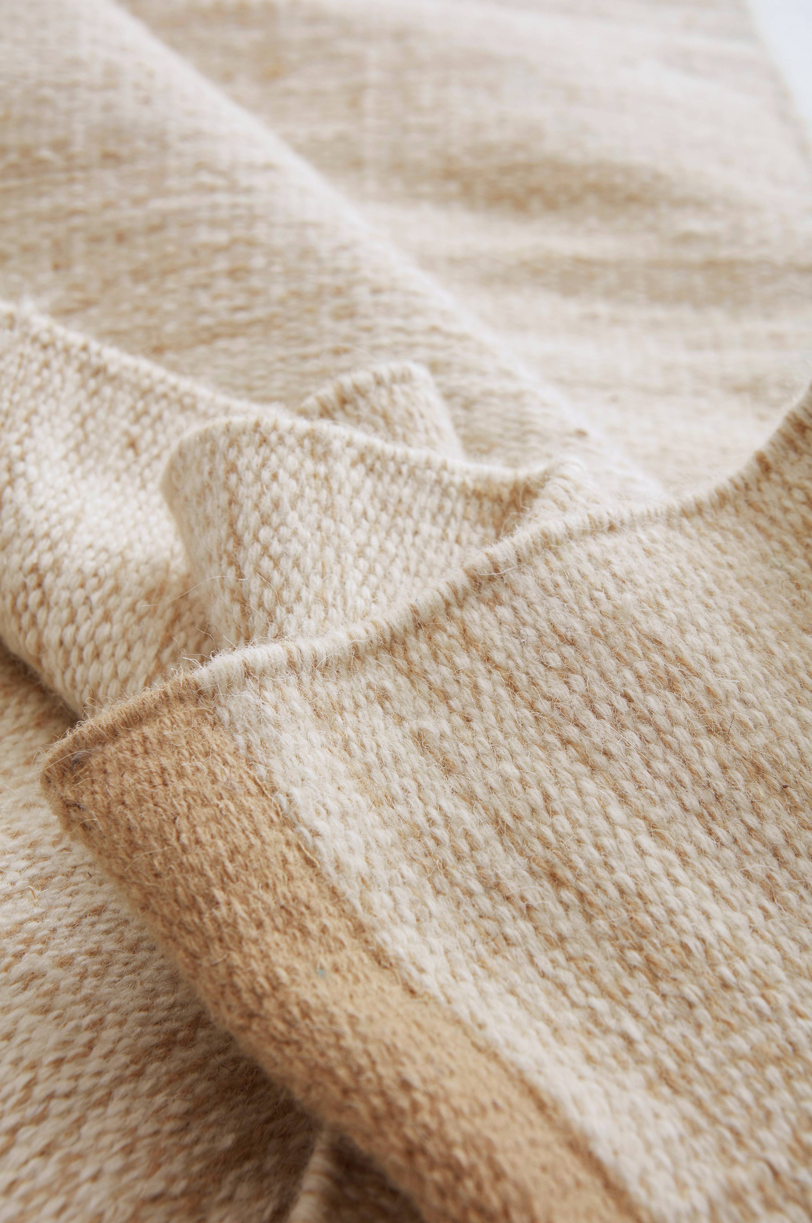 Handvävd matta av garnfärgad ull med varp av bomull. En enfärgad matta tillverkad av ull i högsta kvalité från Nya Zeeland. Den höga kvalitén gör mattan mjuk och lätt att hålla ren. En ullmatta är naturligt smutsavvisande tack vare ullens naturliga fetter. Smuts lägger sig på ytan och kan dammsugas eller vädras bort. Comolini är vändbar. När du rullar ut mattan kan det förekomma en eller flera linjer eller veck över mattans bredd. Linjerna är bara tryckmärken som orsakas av att mattan transporteras rullad. De kommer gradvis att försvinna. Tjocklek 8-10 mm. 1100-1200 g/m².