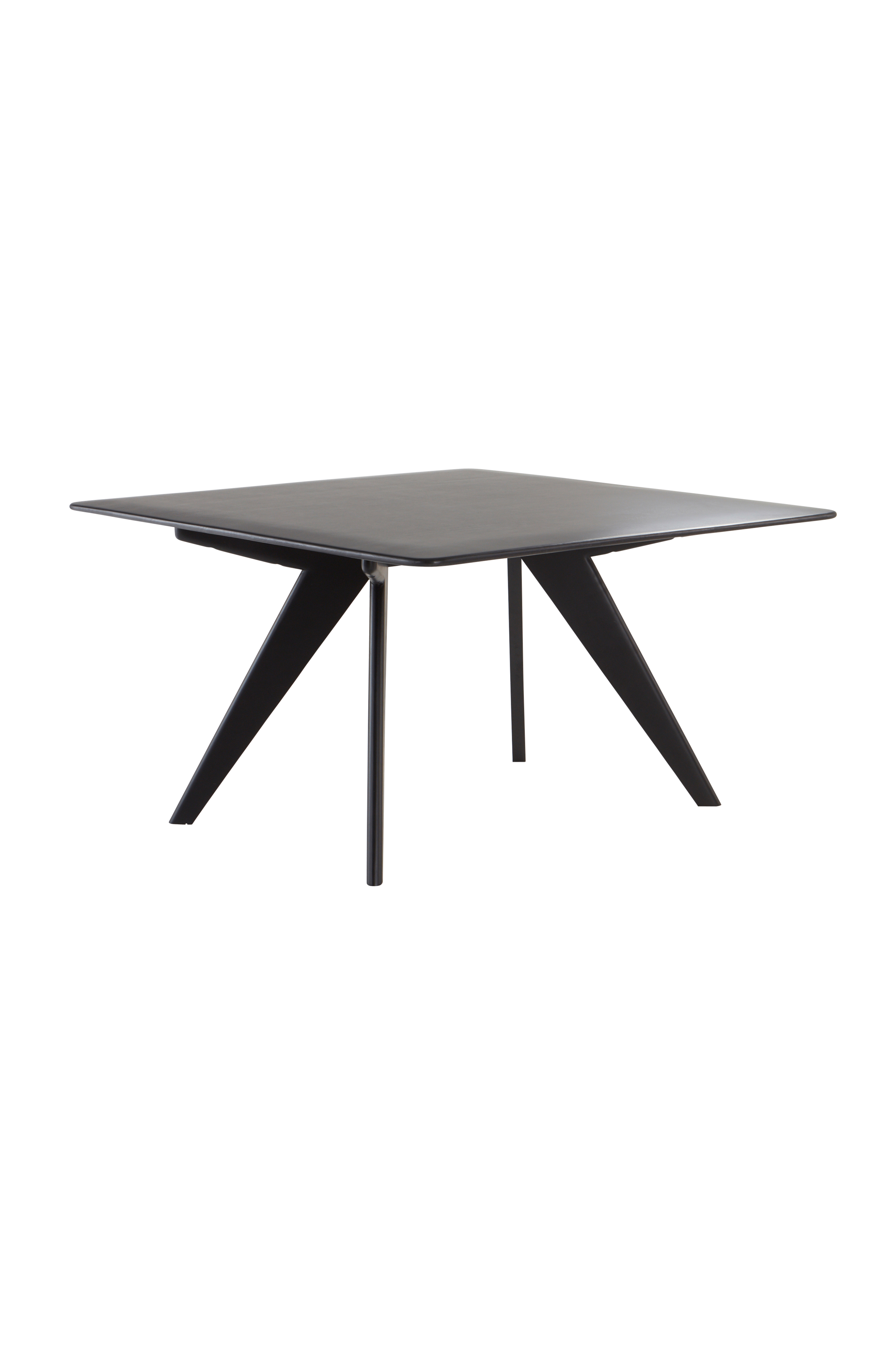 Kvadratiskt matbord i massivt mangoträ. Den släta bordsskivan har rundade hörn och lätt välvd ytterkant runtom, som för tanken till 60-talet. De snyggt formade benen förstärker retrokänslan och den praktiska placeringen av benen ger bättre sittplats runt bordet.