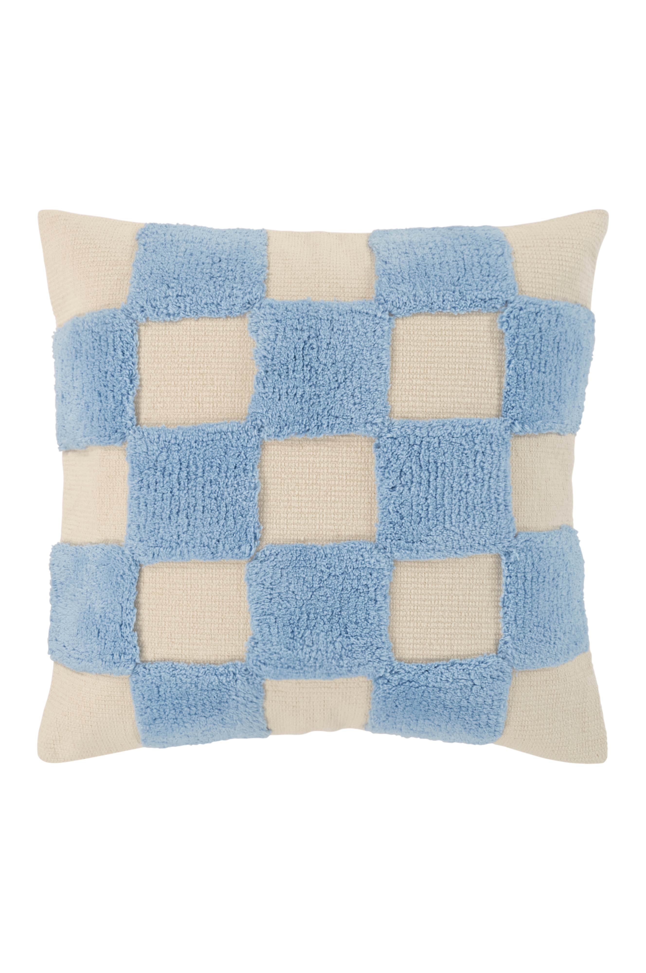 1-pack kuddfodral av bomull med schackrutigt mönster ton-i-ton, där varannan ruta är tuftad och har mjuk lugg. Enfärgad baksida med dold dragkedja.
