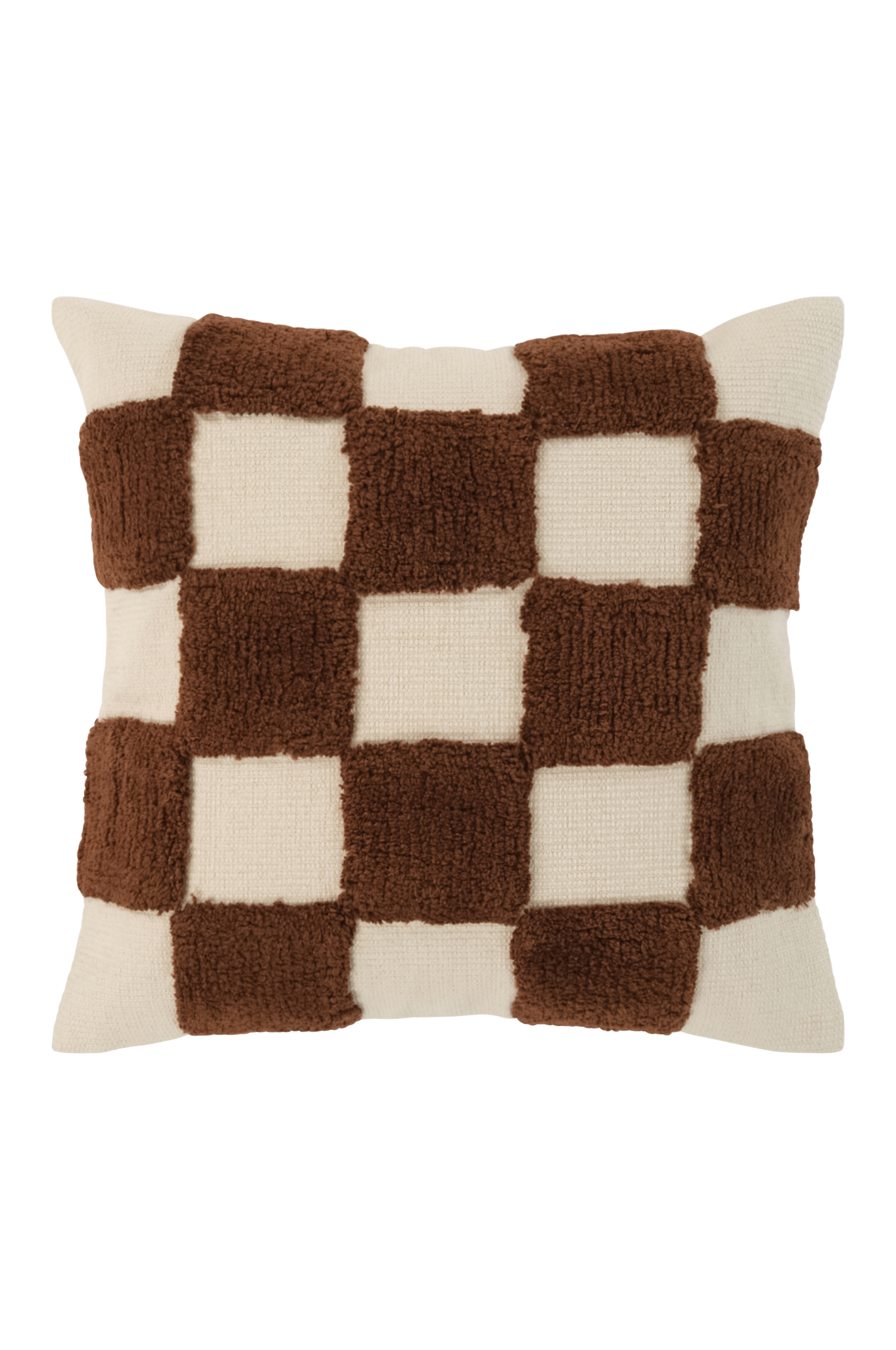 1-pack kuddfodral av bomull med schackrutigt mönster ton-i-ton, där varannan ruta är tuftad och har mjuk lugg. Enfärgad baksida med dold dragkedja.