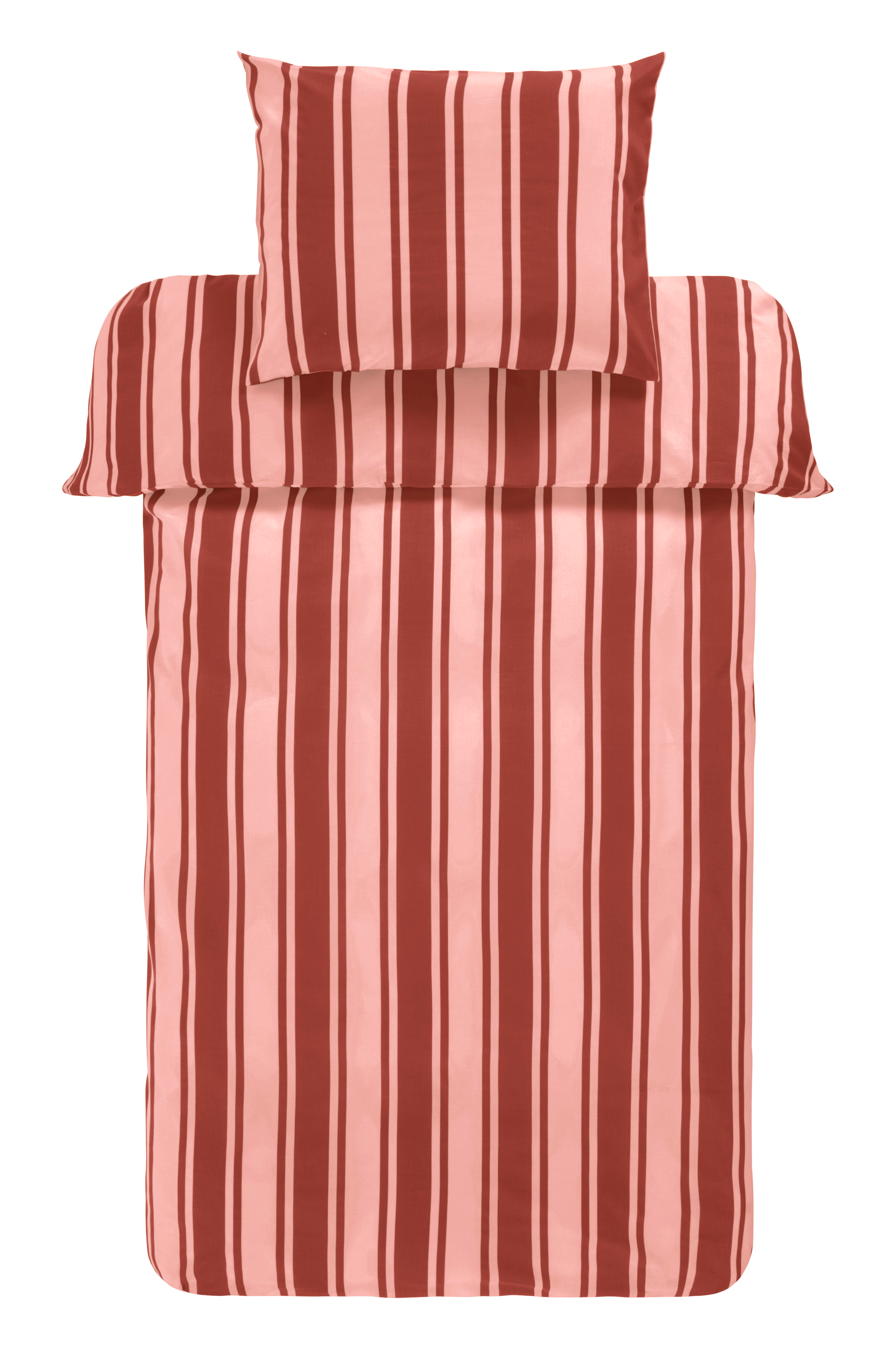 Bäddsetet DEBBIE har en retroinspirerad design med pigmenttryckta ränder, perfekt för trendiga inredningar. Den innehåller ett påslakan och örngott och är en del av DEBBIE-kollektionen, som erbjuder matchande produkter för att förbättra sovrummets estetik.
