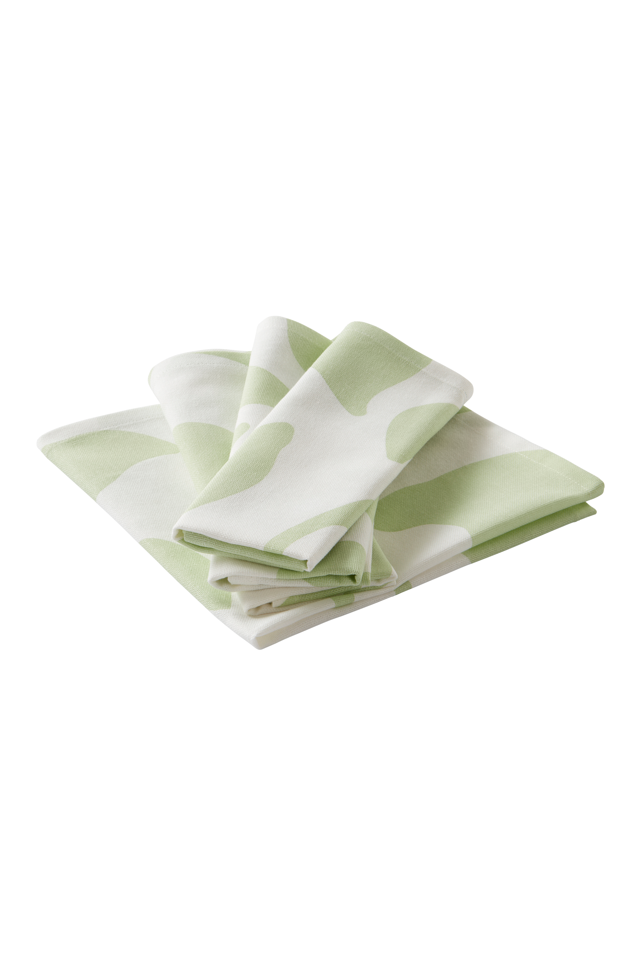 4-pack servetter i halvpanama av bomull. Delarna i programmet DELLA har charmigt bladmönster i somrig färg tryckt på vit botten. Tygets gramvikt 170 g/m².