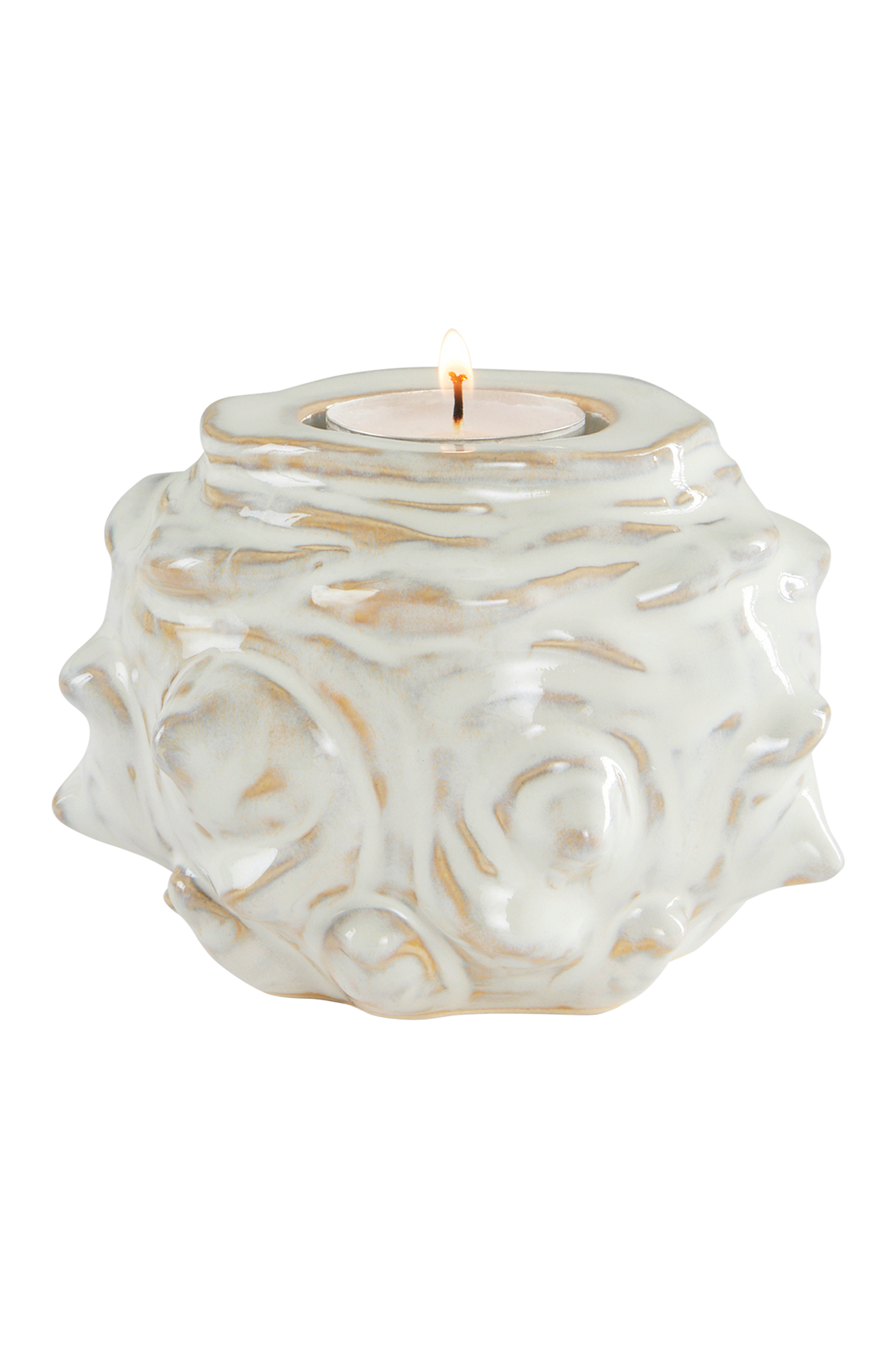 Vackert formad ljuslykta i keramik. Lyktan är handmålad med en livfull och vacker glasyr i neutral färg. Ljus medföljer ej.