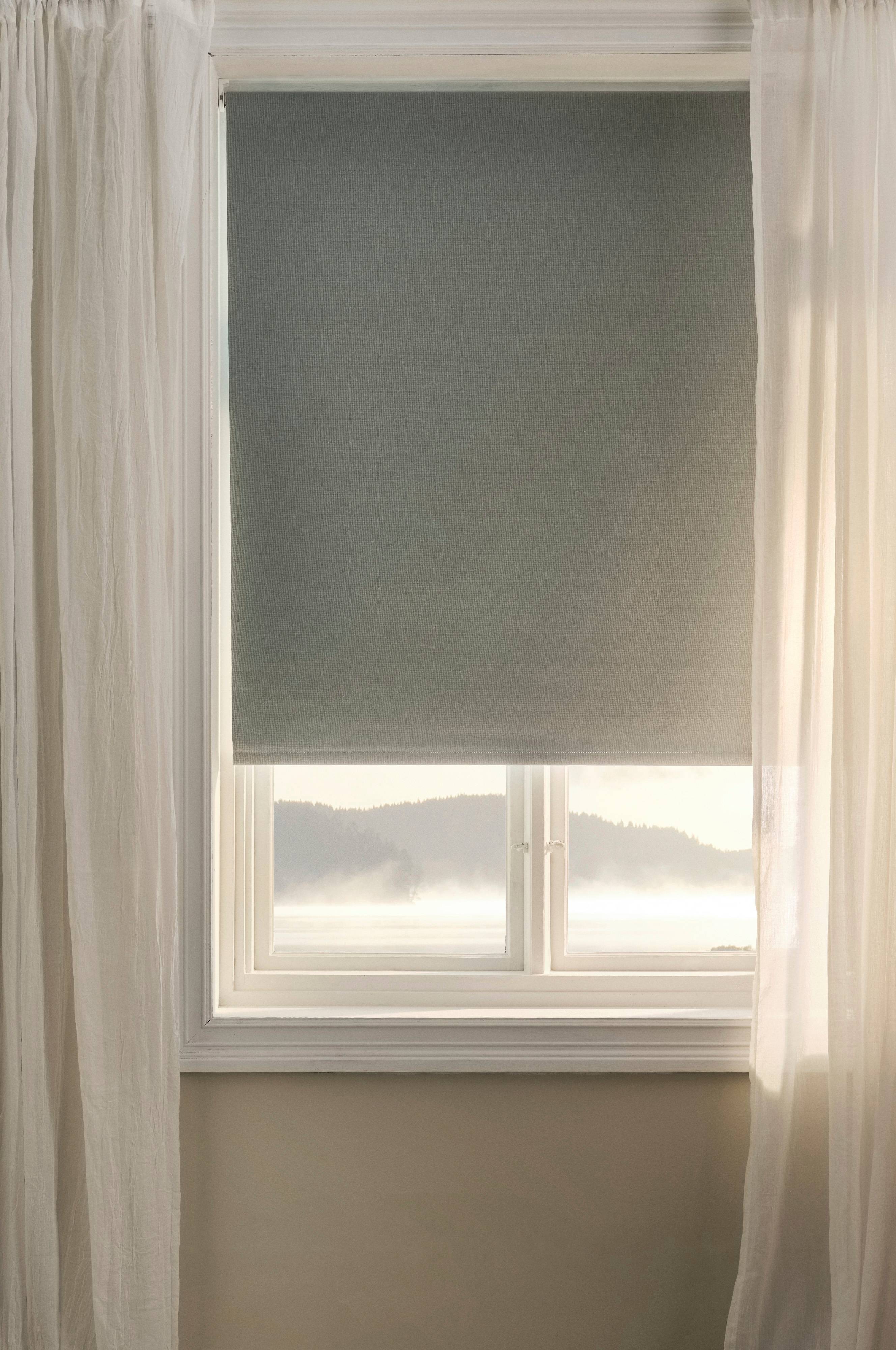 Snygg och funktionell rullgardin i fin färg. Helt ljustätt.