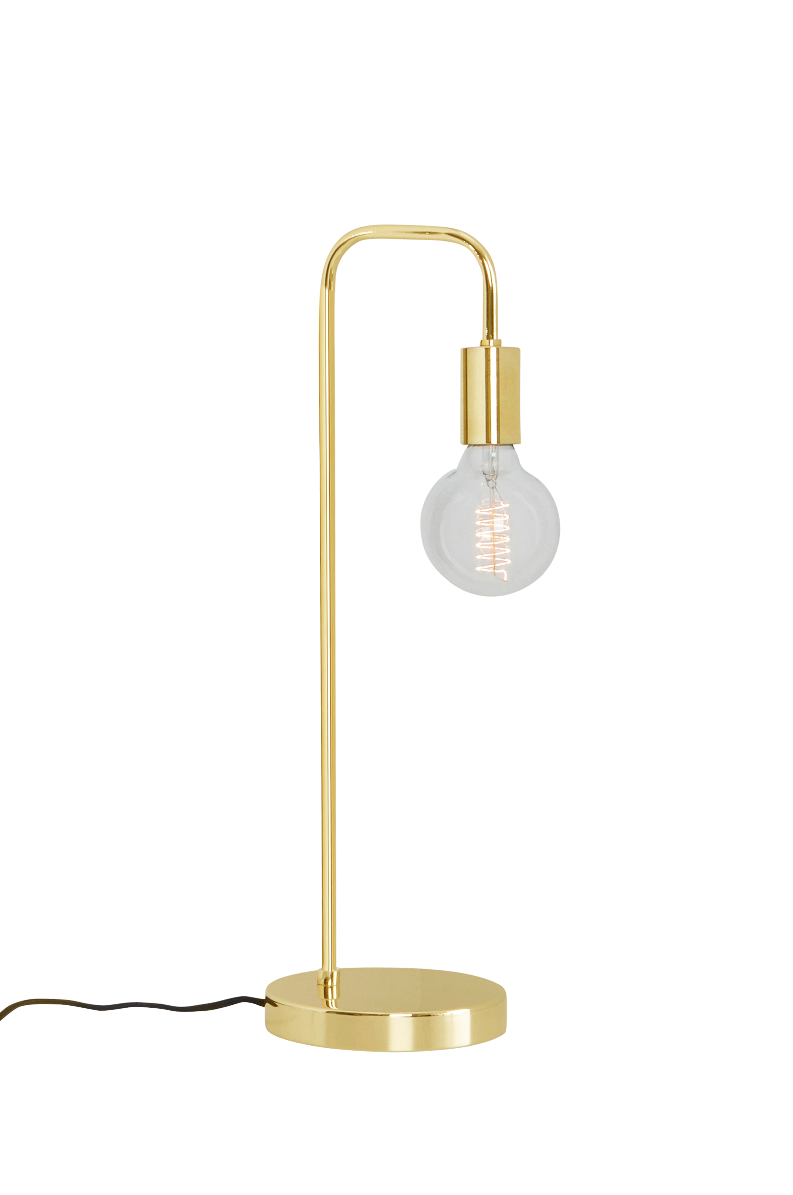 Bordslampa i lackad metall. En stilren bordslampa i enkel och diskret form. Tar lite plats men ger mycket ljus tillbaka. Textilsladd 25/150 cm. Glödlampa medföljer ej.