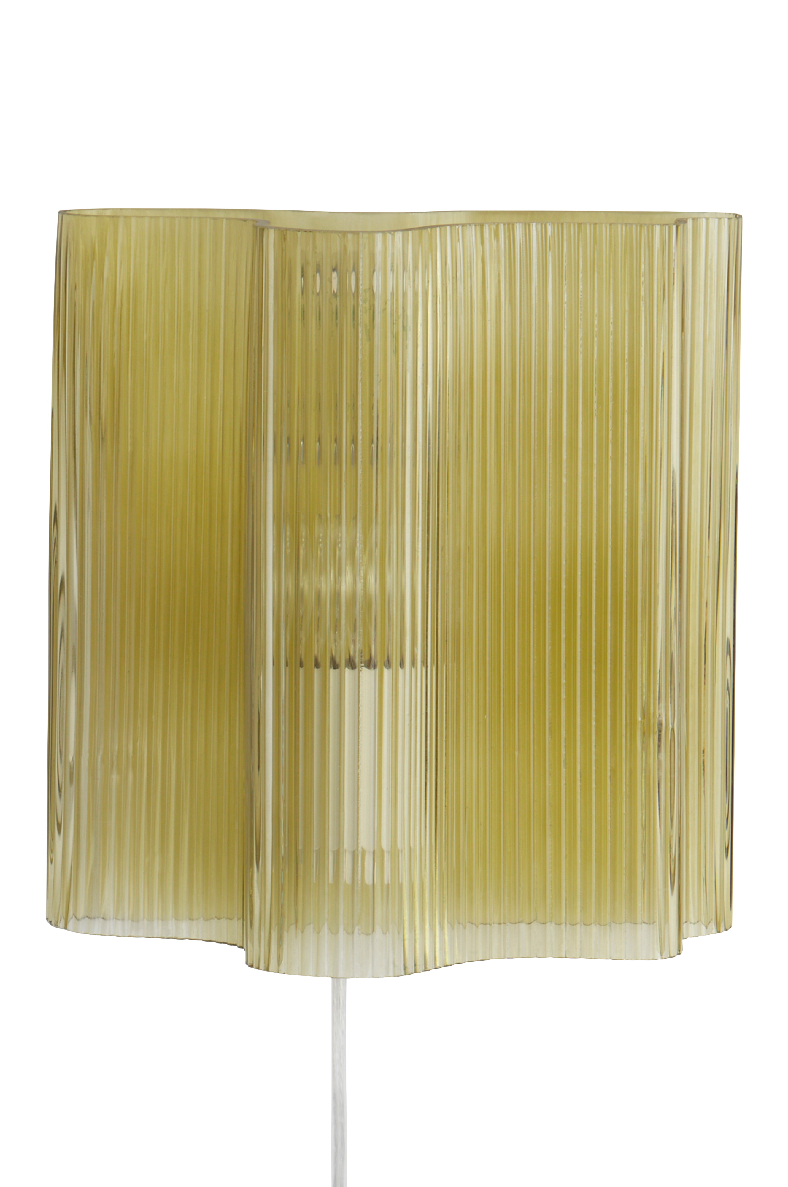Vägglampa av glas och formen är som en del av en blomma, när naturen får inspirera blir det fint. Lampan har uppåtriktat och nedåtriktat ljus kombinerat med belysning genom glaset. Glaset har strukturränder som dämpar ljuset och ger vackert sken. Lampans fäste är av metall och sladden är transparent. Strömbrytaren sitter på sladden. Lampan är ojordad, klass 2.
