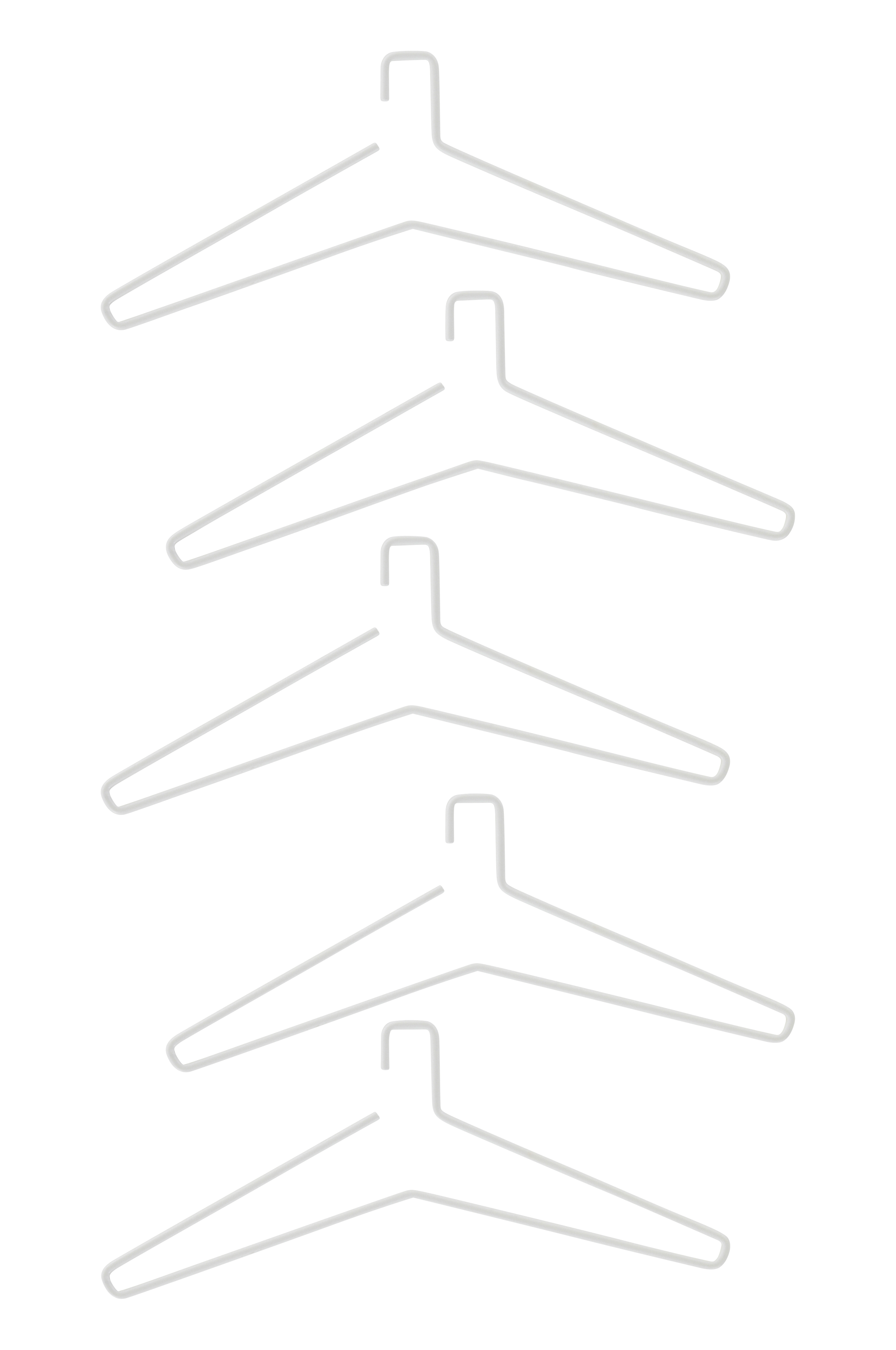 5-pack galgar av pulverlackerad stål. Galgarna är snygga att ha på en hatthylla i hallen eller på en klädställning i sovrummet.