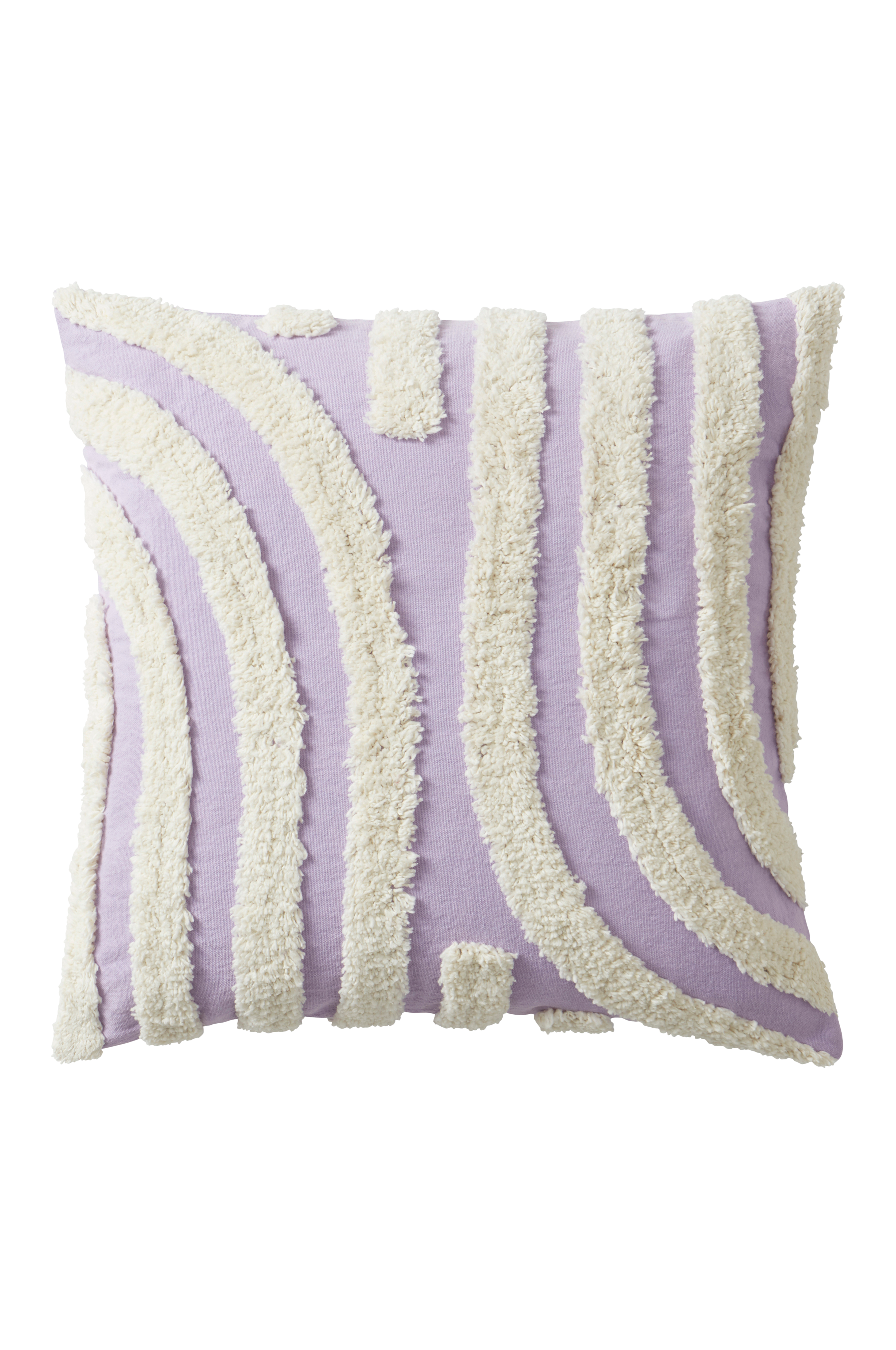 1-pack kuddfodral i lite grövre, ekologiskt bomullstyg med tuftade vågor i mjukt, ljust garn. Enfärgad baksida med dold dragkedja.