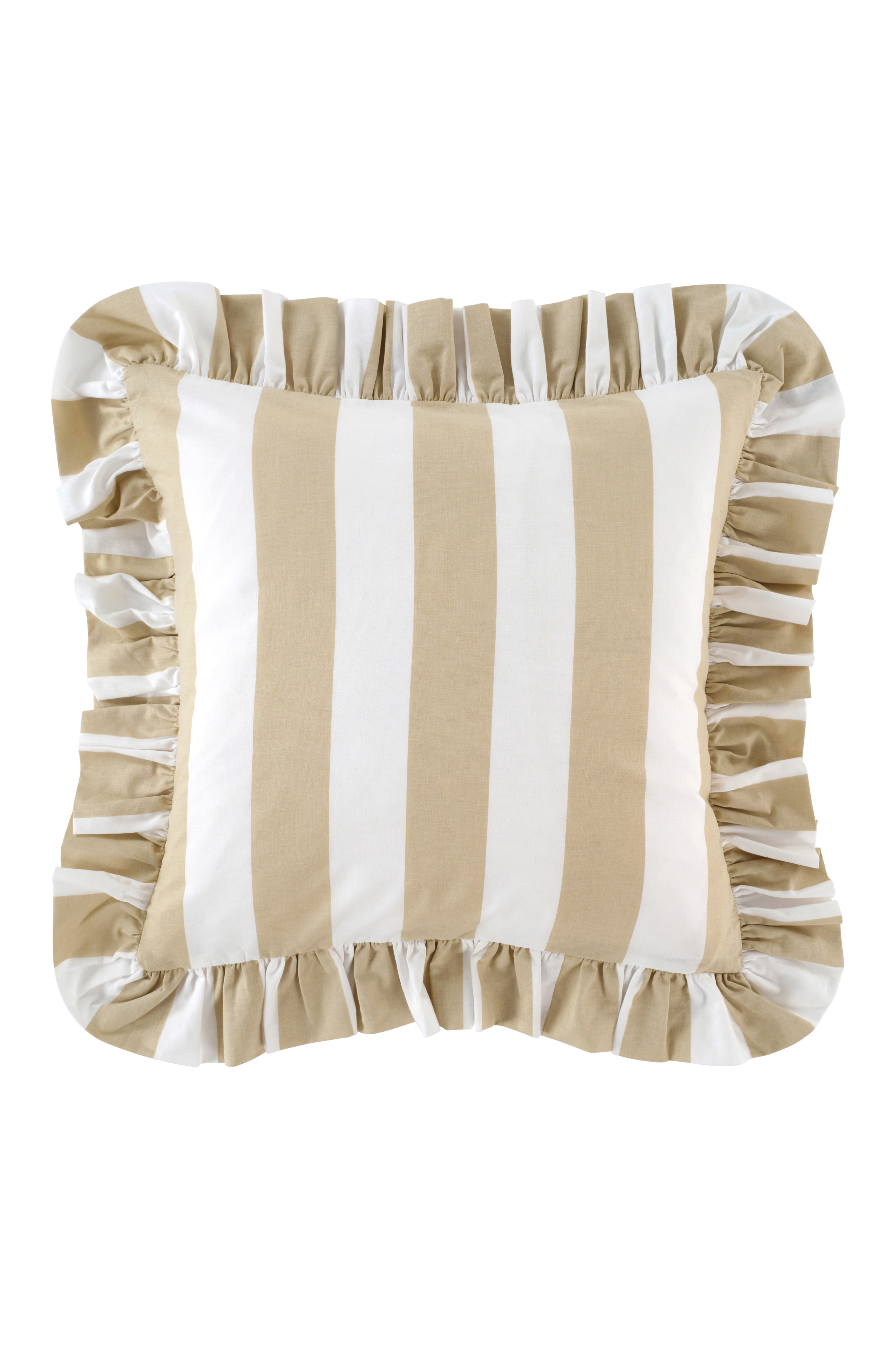 FREDDIE kuddfodral ger en dynamisk touch med djärva ränder och rufsiga kanter. De förvandlar din sittgrupp till en livlig fokuspunkt, perfekt för att mixa och matcha. Förhöj din inredning och skapa en inbjudande atmosfär med dessa underbara överdrag.