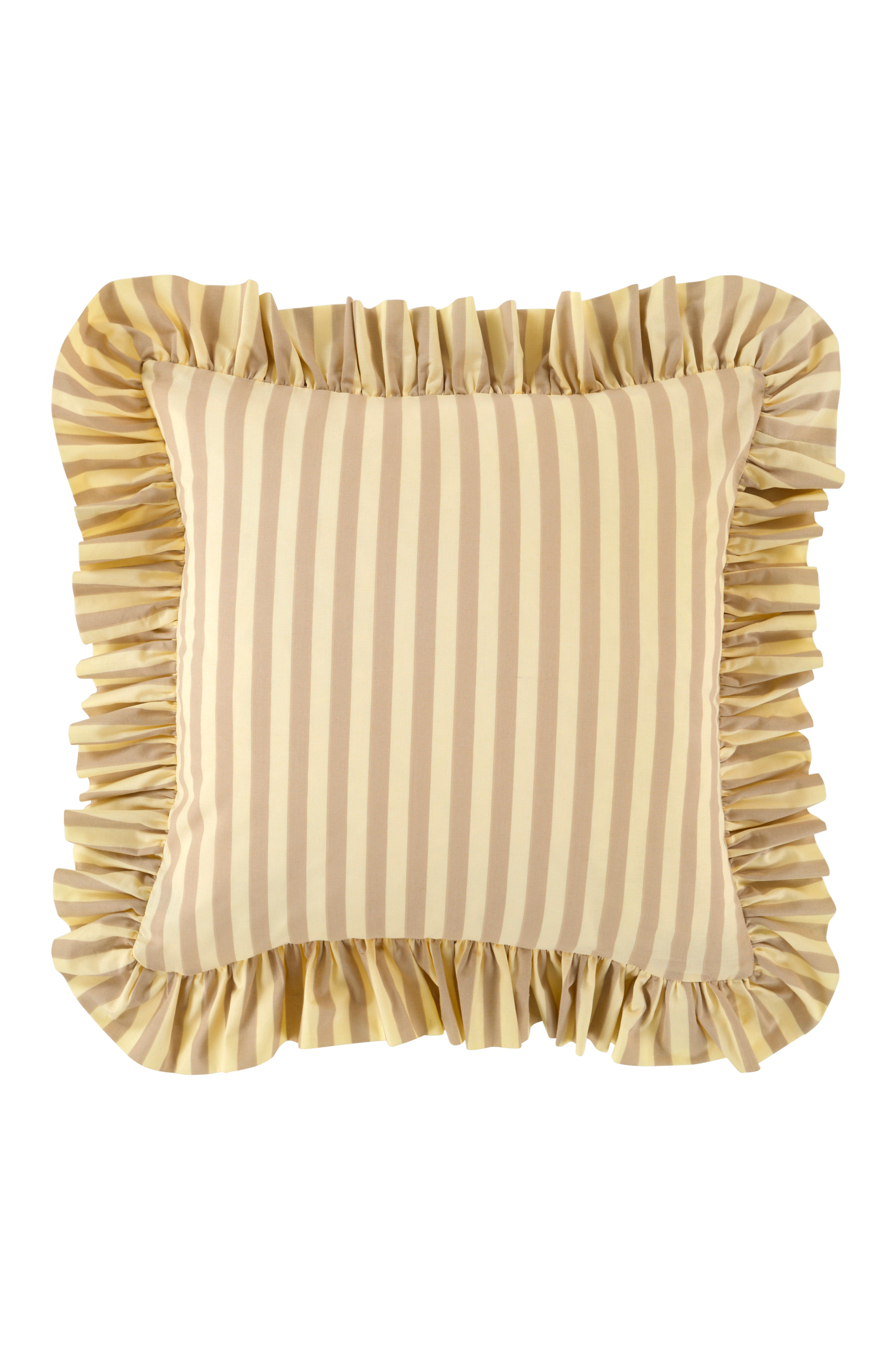 FREDDIE kuddfodral ger en dynamisk touch med djärva ränder och rufsiga kanter. De förvandlar din sittgrupp till en livlig fokuspunkt, perfekt för att mixa och matcha. Förhöj din inredning och skapa en inbjudande atmosfär med dessa underbara överdrag.