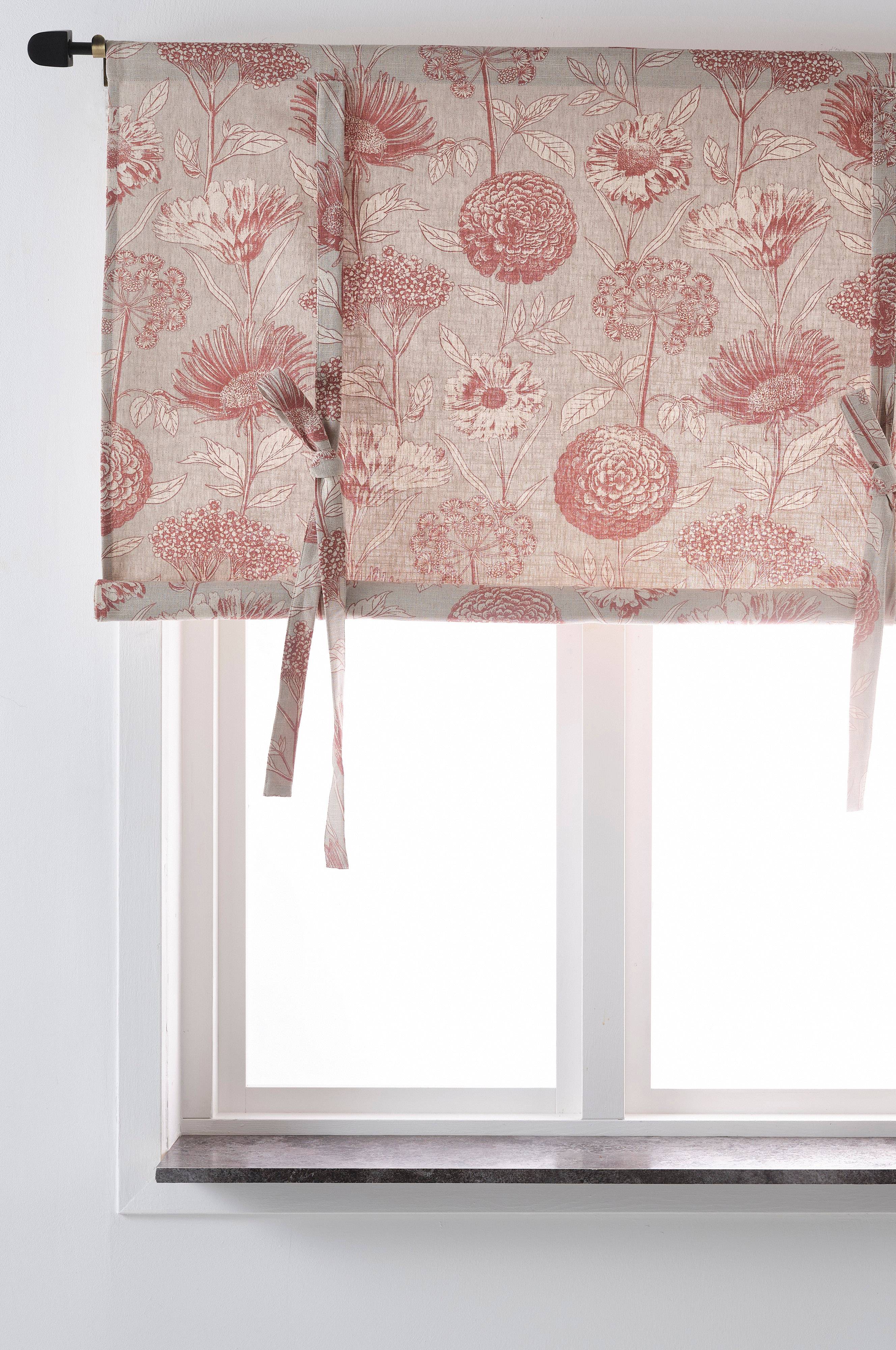 Roll up-gardin i bomullsblandning med tryckt mönster. Hängs på vanlig gardinstång. Höjden regleras med knytband.