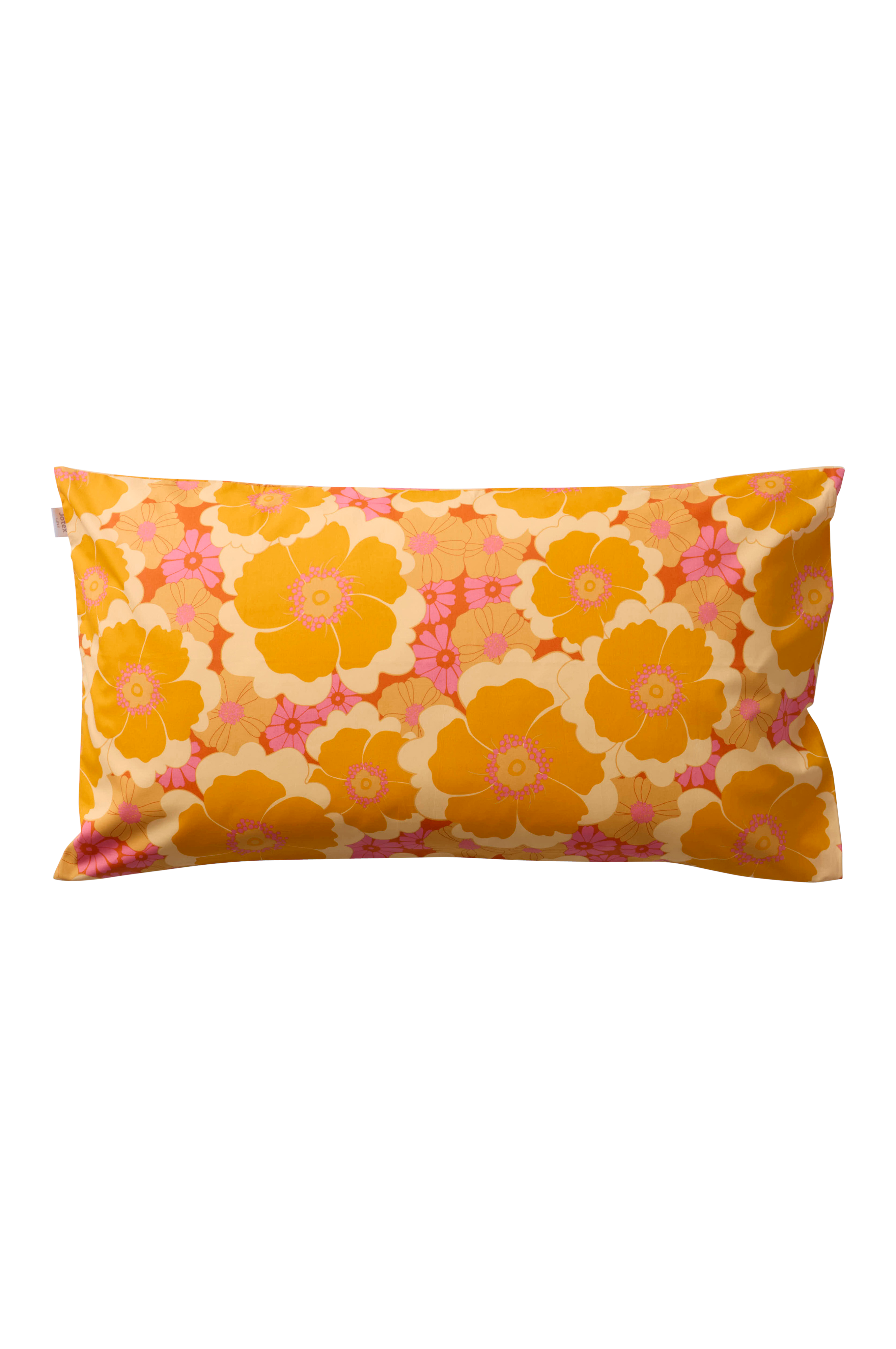 Kuddfodralet FRIDA från Maria Carlberg tillför retrocharm till inredningen med sitt djärva blommönster. Detta pigmenttryckta, extra breda örngott är tillverkat av ekologisk bomullspercale och kombinerar komfort och stil, vilket gör det till ett perfekt val för att fräscha upp ditt vardagsrum med konstnärlig känsla.