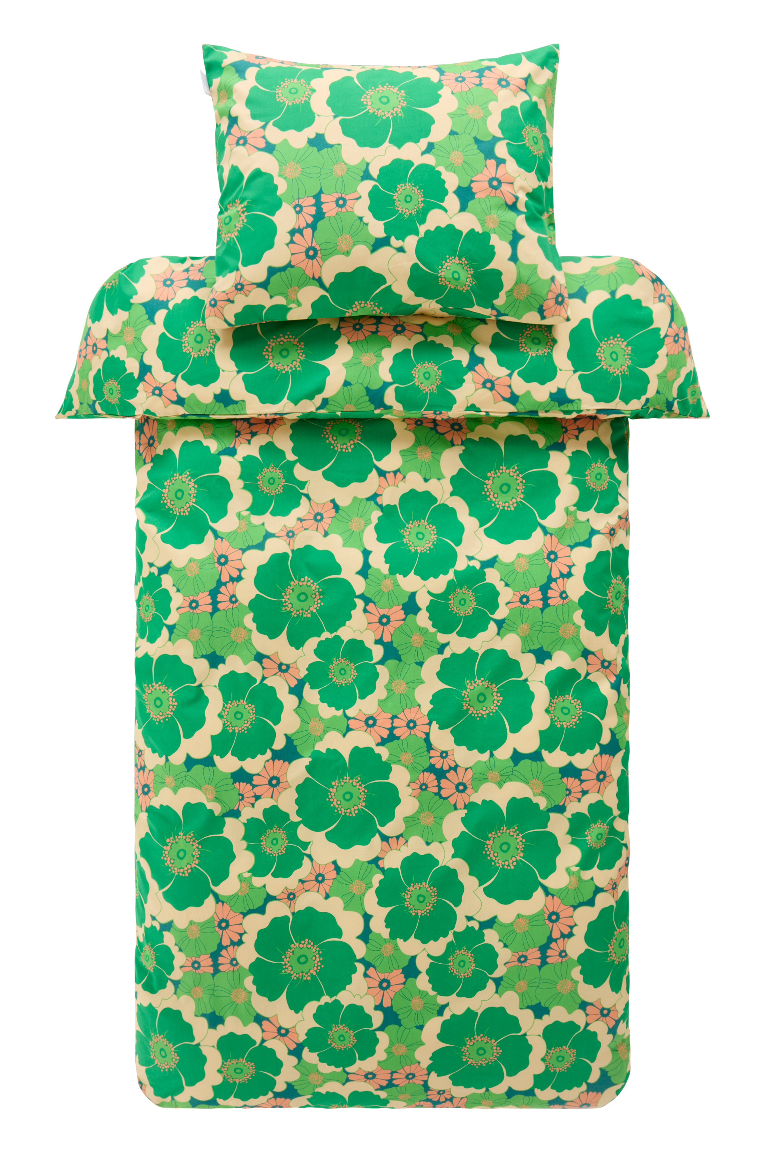 FRIDA bäddset förhöjer sovrummet med sitt retroblommönster av Maria Carlberg. Tillverkad av krispig bomullspercale som ger en mjuk känsla som andas och ger en vilsam sömn. Detta set innehåller ett påslakan och örngott med praktiska handhål och dolda tryckknappar.