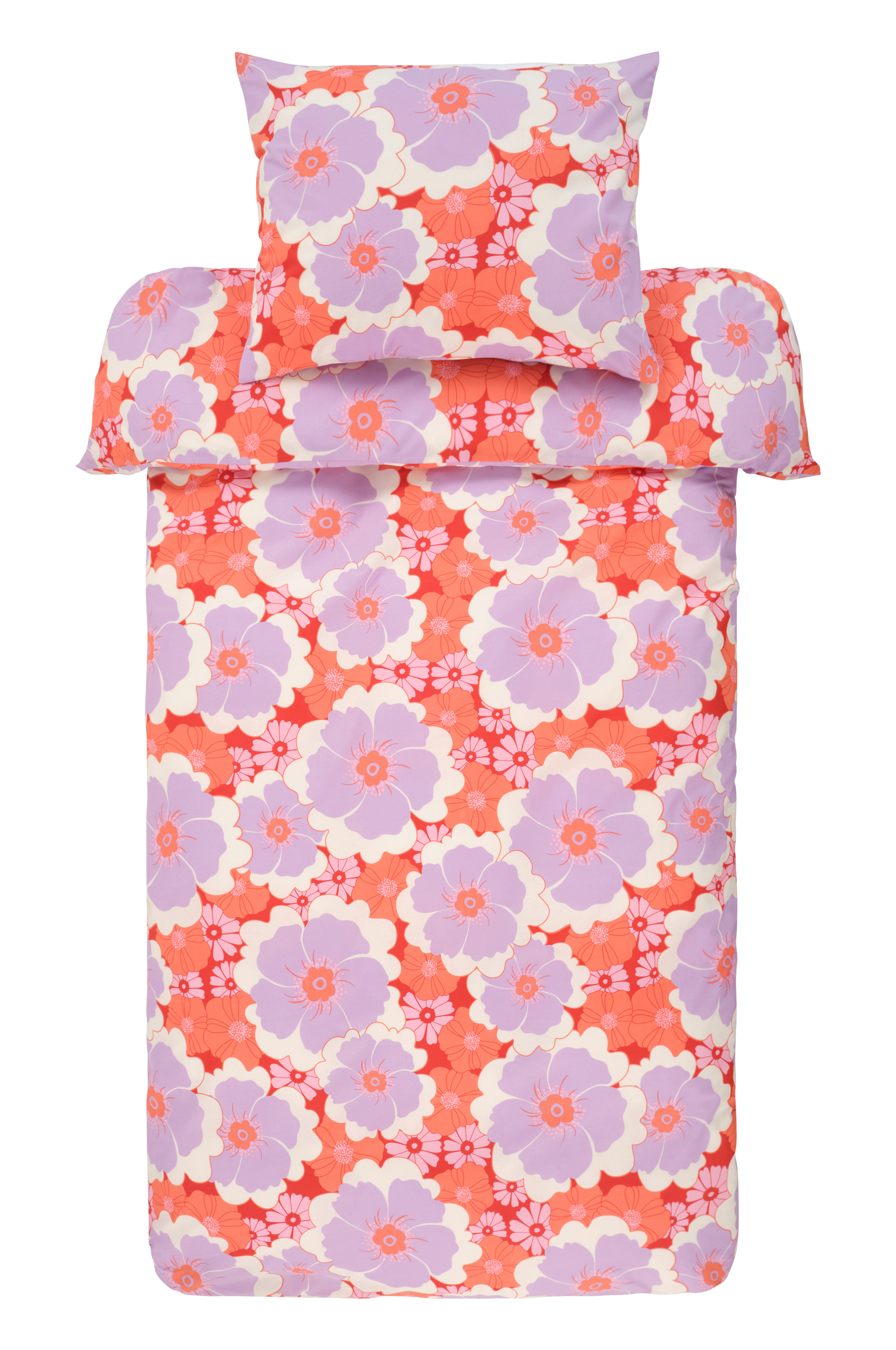 FRIDA bäddset förhöjer sovrummet med sitt retroblommönster av Maria Carlberg. Tillverkad av krispig bomullspercale som ger en mjuk känsla som andas och ger en vilsam sömn. Detta set innehåller ett påslakan och örngott med praktiska handhål och dolda tryckknappar.