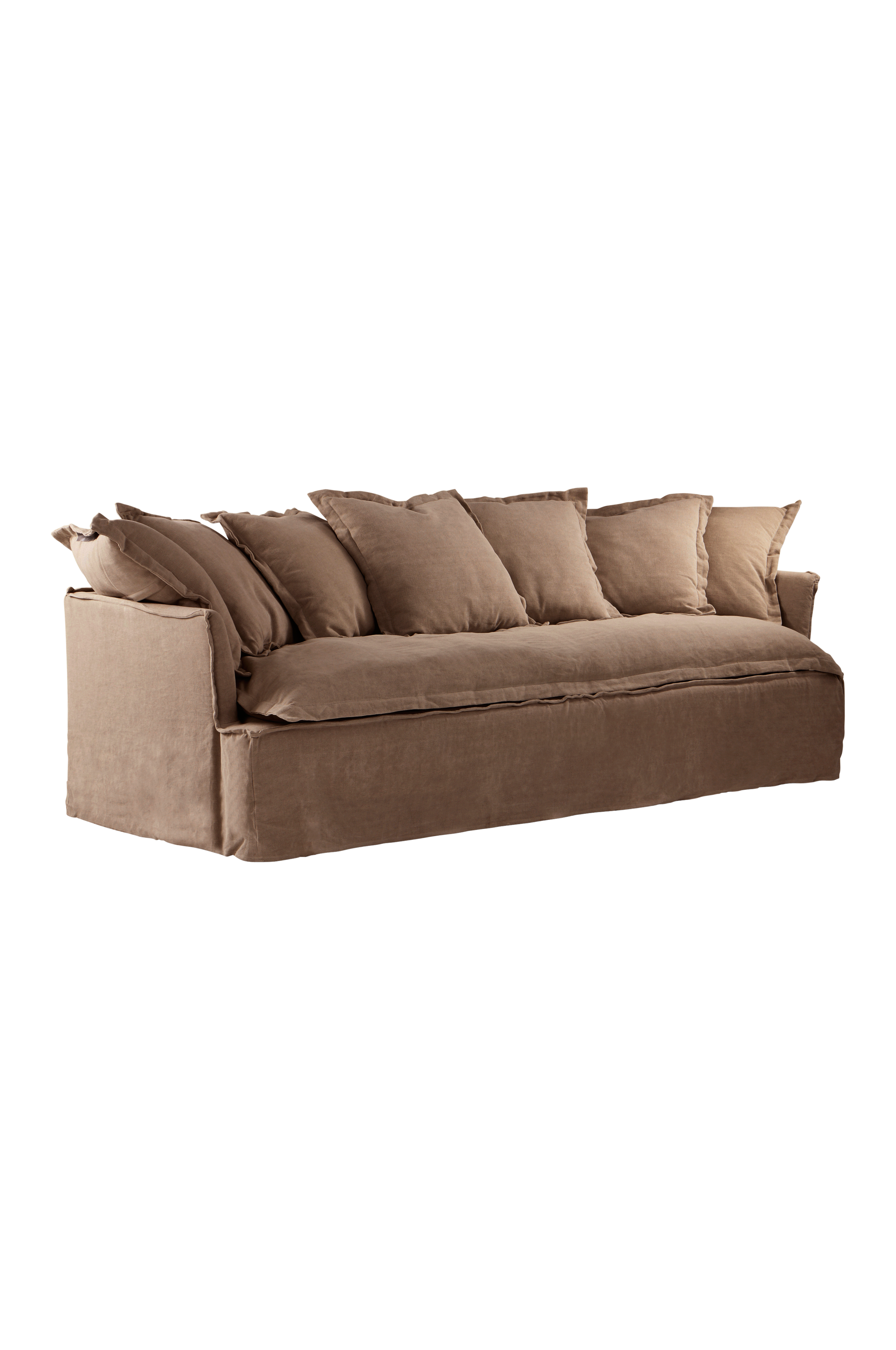 GARDANNE 3-sits soffa kombinerar komfort och stil med ett linneöverdrag och sju mjuka kuddar. Den avtagbara klädseln gör den lätt att underhålla. Den neutrala färgen smälter in i olika inredningsdesigner och skapar en varm, inbjudande atmosfär som är perfekt för alla hem.