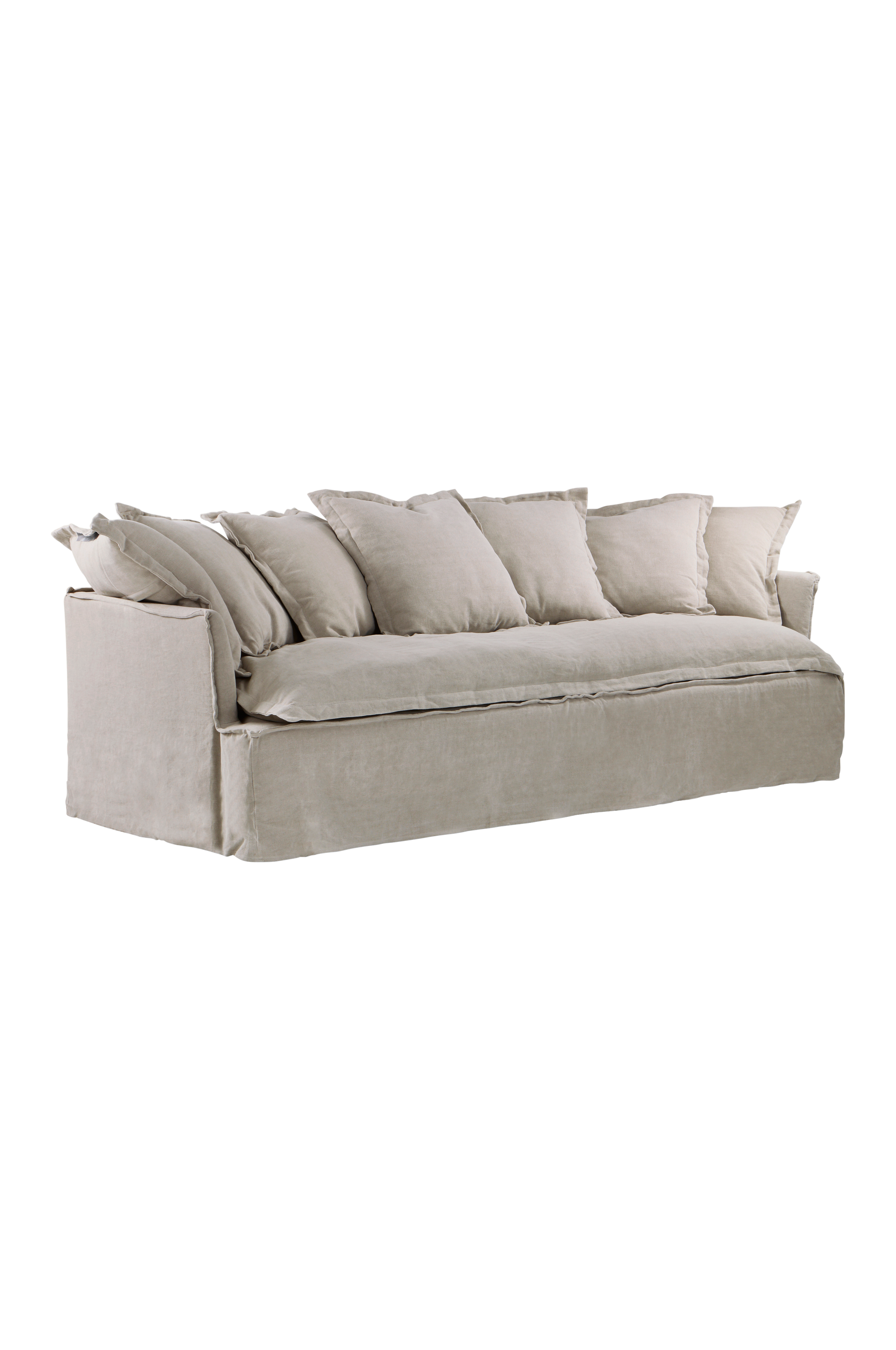 GARDANNE 3-sits soffa kombinerar komfort och stil med ett linneöverdrag och sju mjuka kuddar. Den avtagbara klädseln gör den lätt att underhålla. Den neutrala färgen smälter in i olika inredningsdesigner och skapar en varm, inbjudande atmosfär som är perfekt för alla hem.
