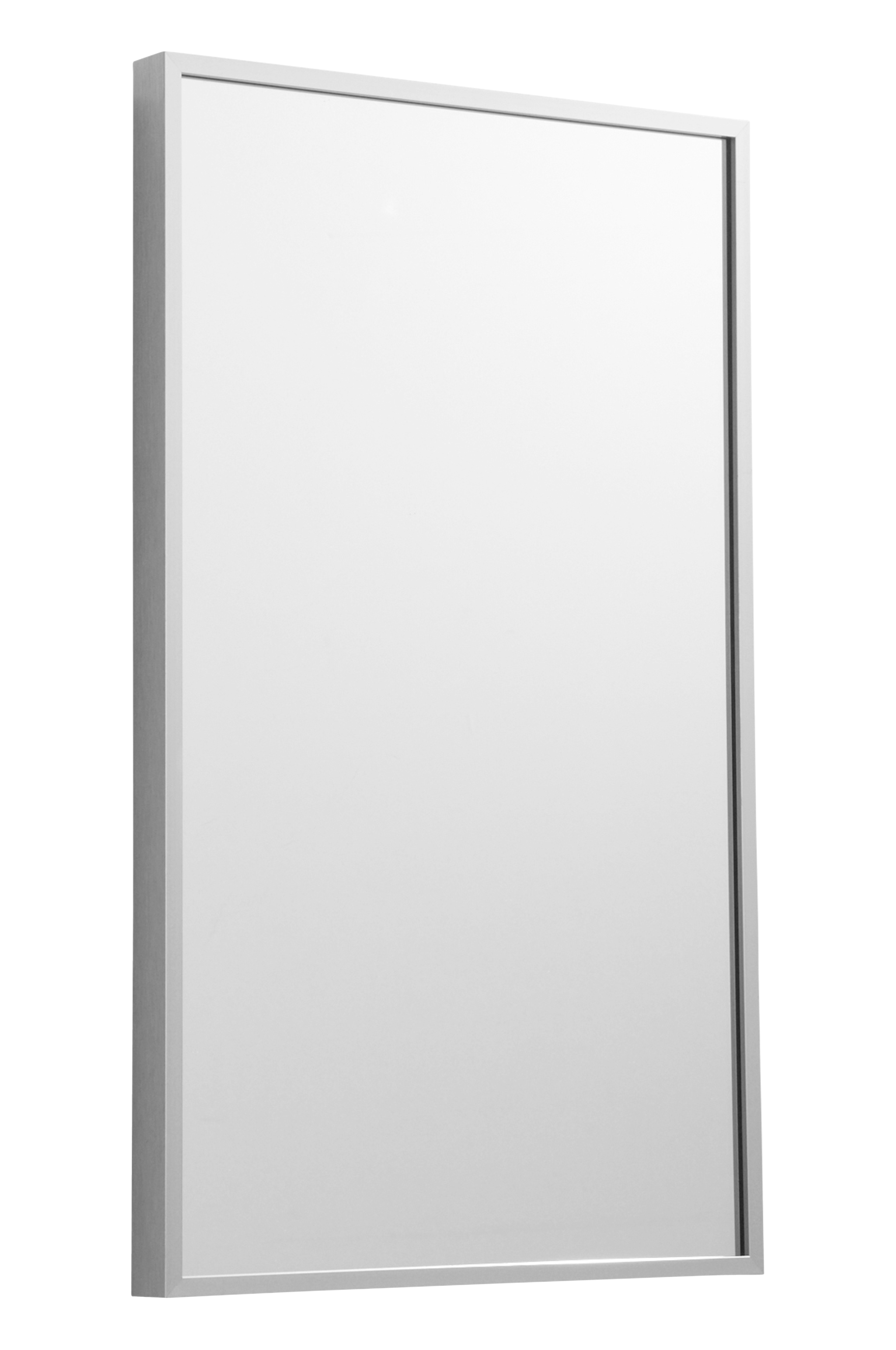 Rektangulär spegel med smäcker aluminiumram. Ramen har dold förstärkning av MDF. Tre dolda hängare på baksidan, så spegeln kan hängas både vågrät och lodrät.