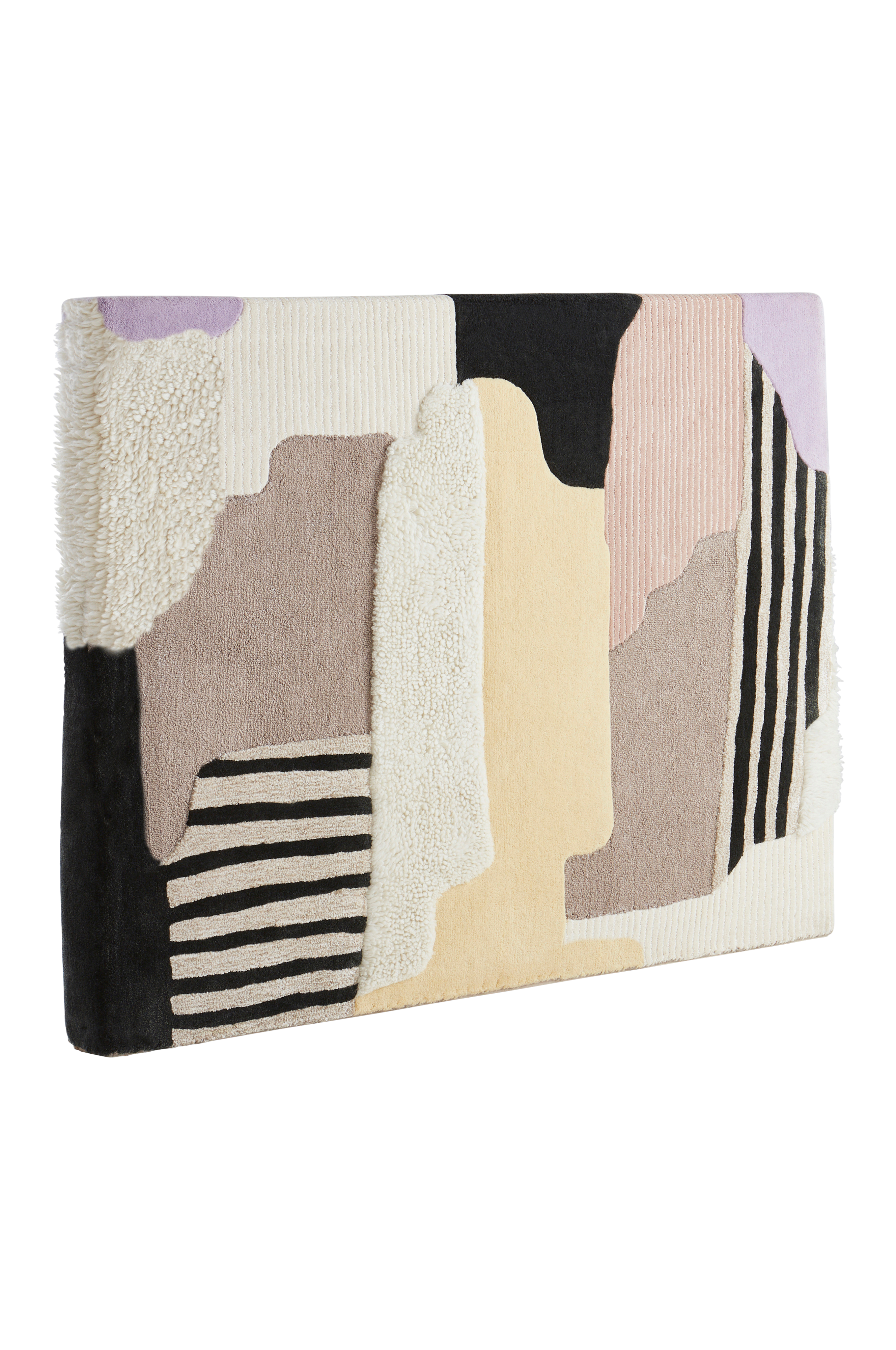 HANNE är en sänggavel klädd med handtuftad matta, som har ett fantastiskt mönster skapat av olika garnfärg, vävteknik och lugghöjd. Stommen är av plywood. Klädseln är ej avtagbar. Den mattklädda sänggaveln är behaglig att sitta och luta sig mot samtidigt som den skyddar väggen bakom sängen som lätt kan bli sliten och ful. Sänggaveln placeras mot väggen bakom din säng eller resårmadrass.