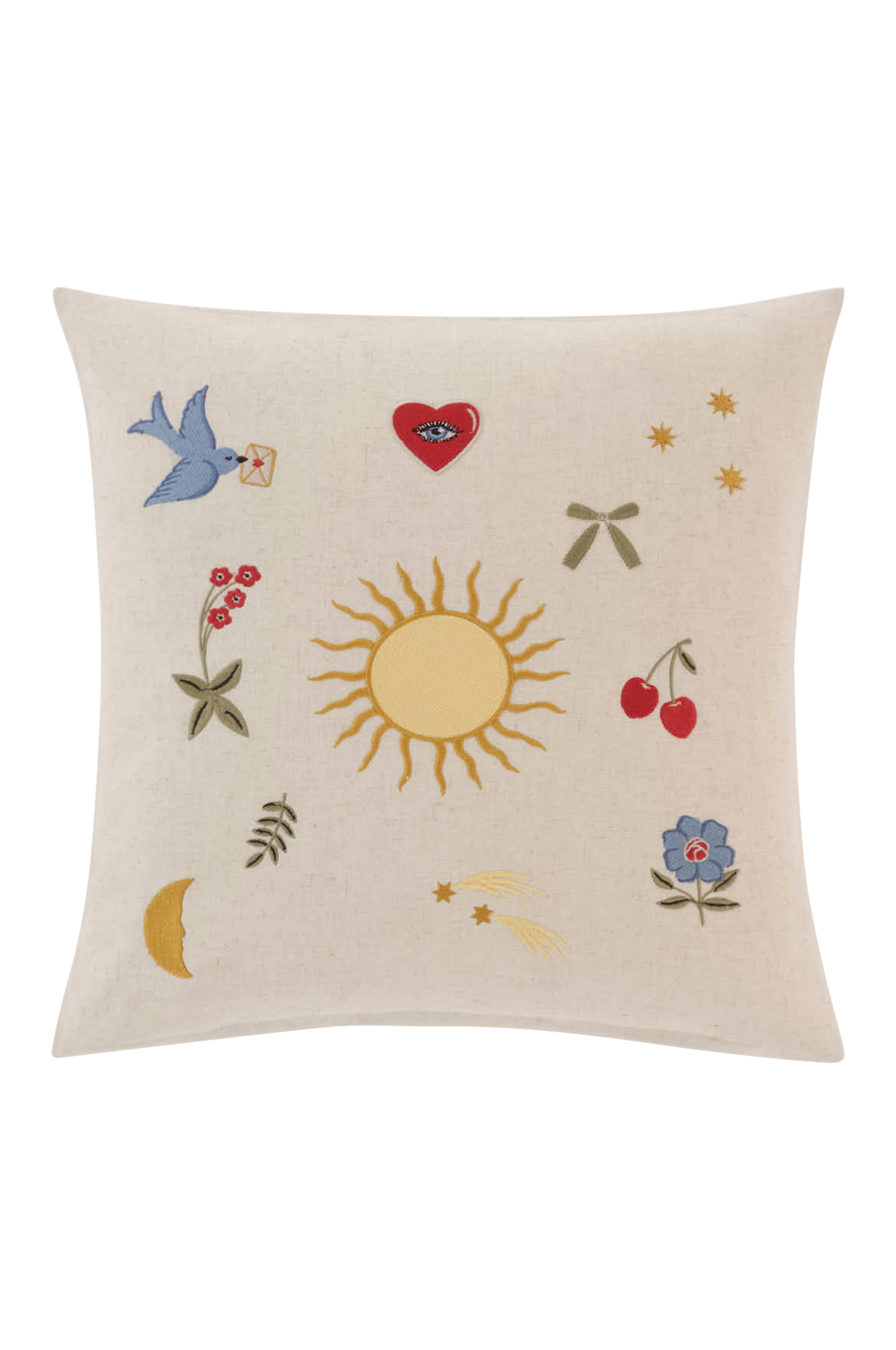 Förhöj din inredning med kuddfodralet HAPPY, tillverkat av en bomull-flaxblandning. Det har en tvättad yta och ett charmigt broderi på framsidan. Den släta baksidan och den dolda dragkedjan är mångsidiga och ger en lekfull touch till alla rum.