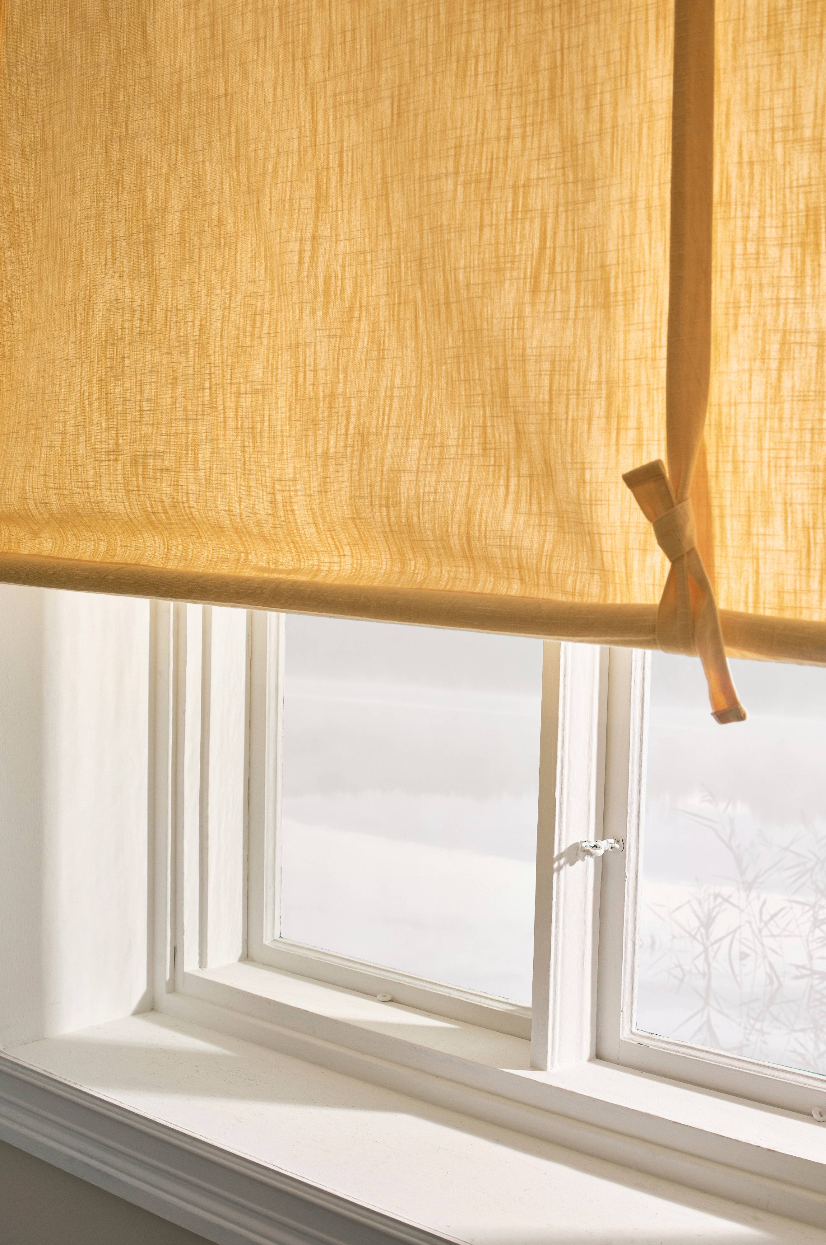 Enfärgad roll up-gardin av bomull. Hängs på vanlig gardinstång. Enfärgat lugnar ner samtidigt som det skapar en ombonad och mysig känsla i ditt hem. Höjden regleras med knytband.