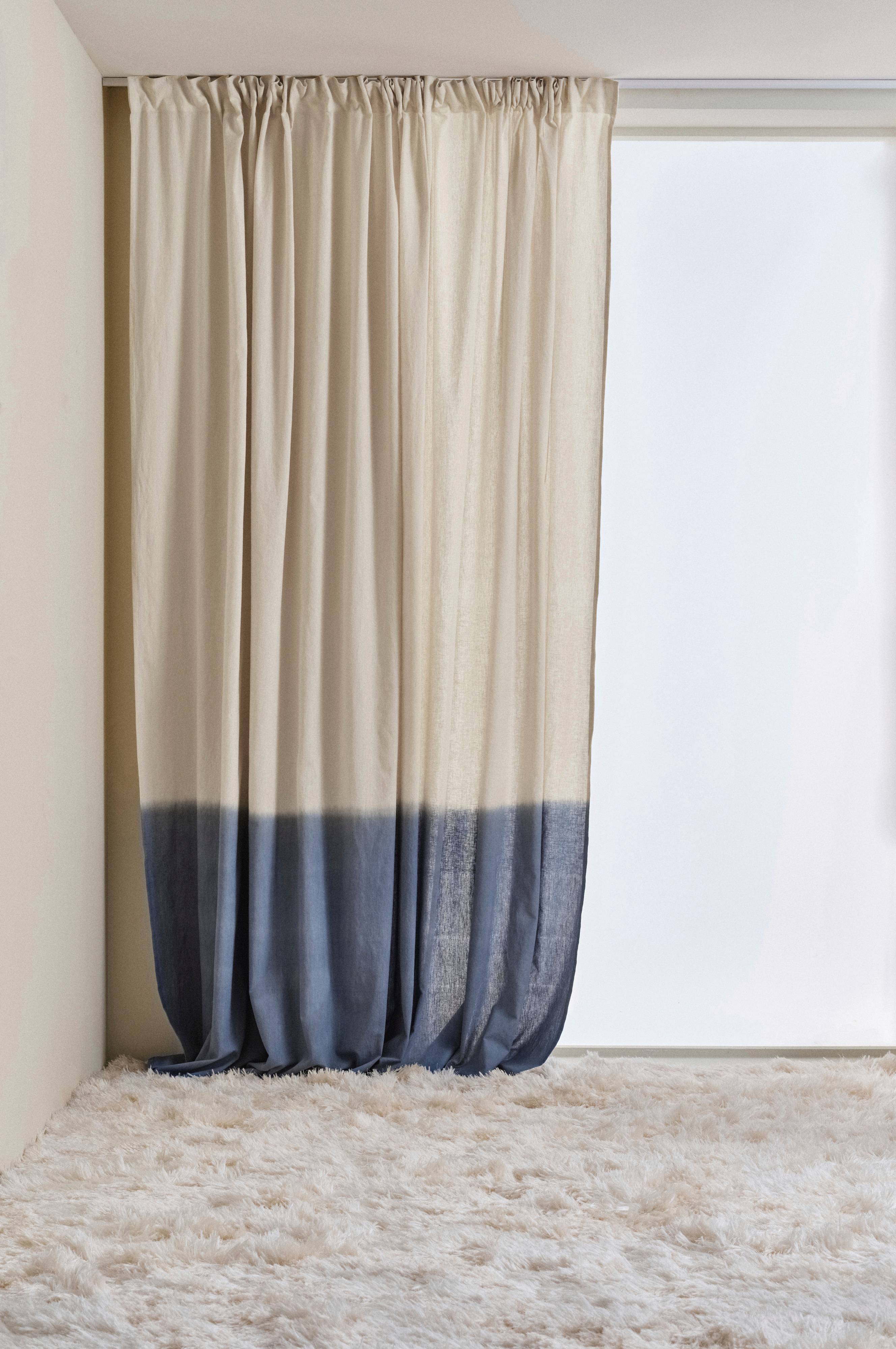 En gardinlängd av bomull och lin i fin kombination, tyget har lätt linnestruktur. Gardinlängden är härligt färgad med avvikande nyans nedtill, den diffusa övergången ger skön batikkänsla. Den extra breda längden har påsytt multifunktionsband. Gardinen kan hängas upp med fingerkrokar, kanal samt dold hälla.