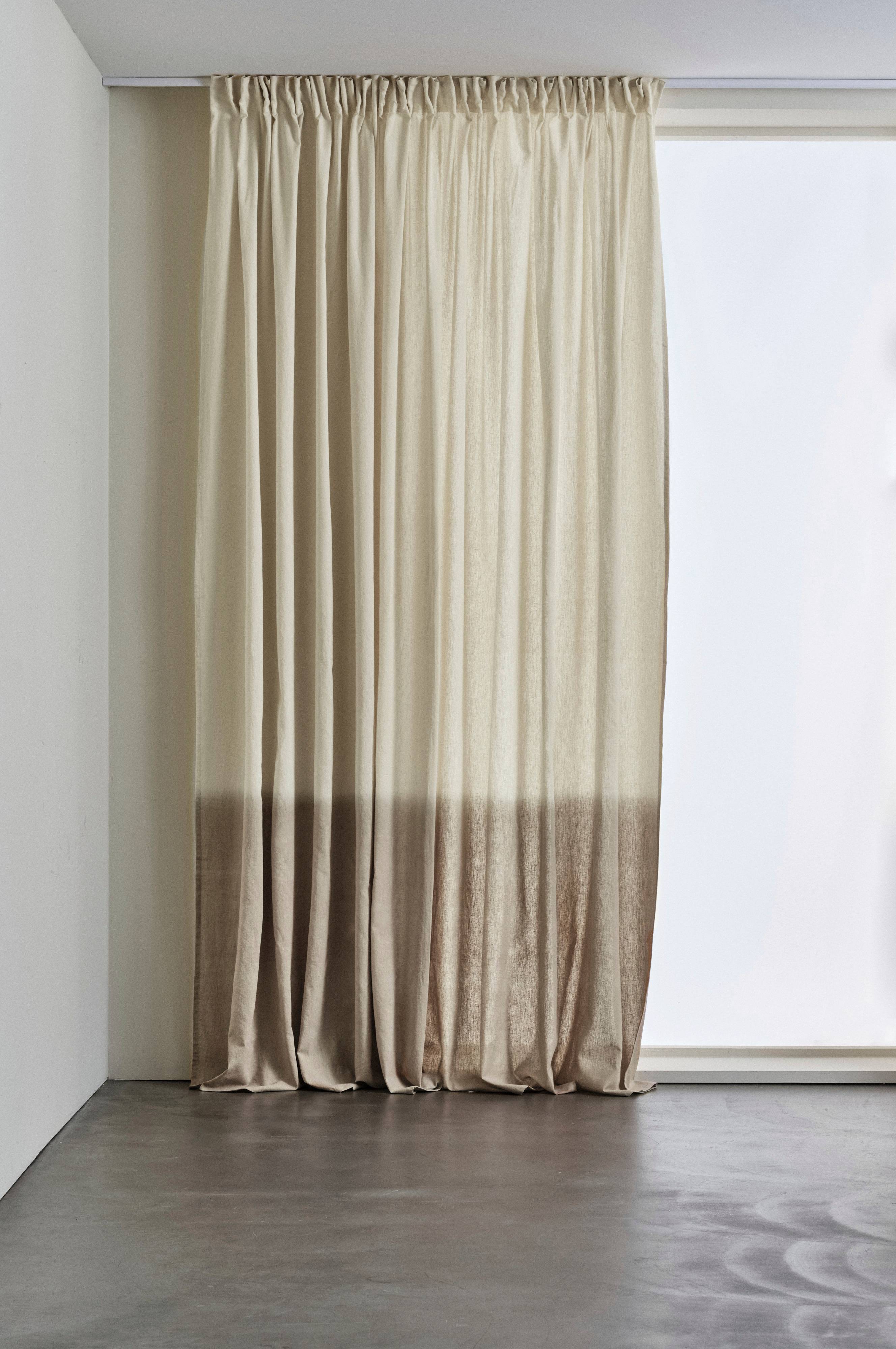 En gardinlängd av bomull och lin i fin kombination, tyget har lätt linnestruktur. Gardinlängden är härligt färgad med avvikande nyans nedtill, den diffusa övergången ger skön batikkänsla. Den extra breda längden har påsytt multifunktionsband. Gardinen kan hängas upp med fingerkrokar, kanal samt dold hälla.