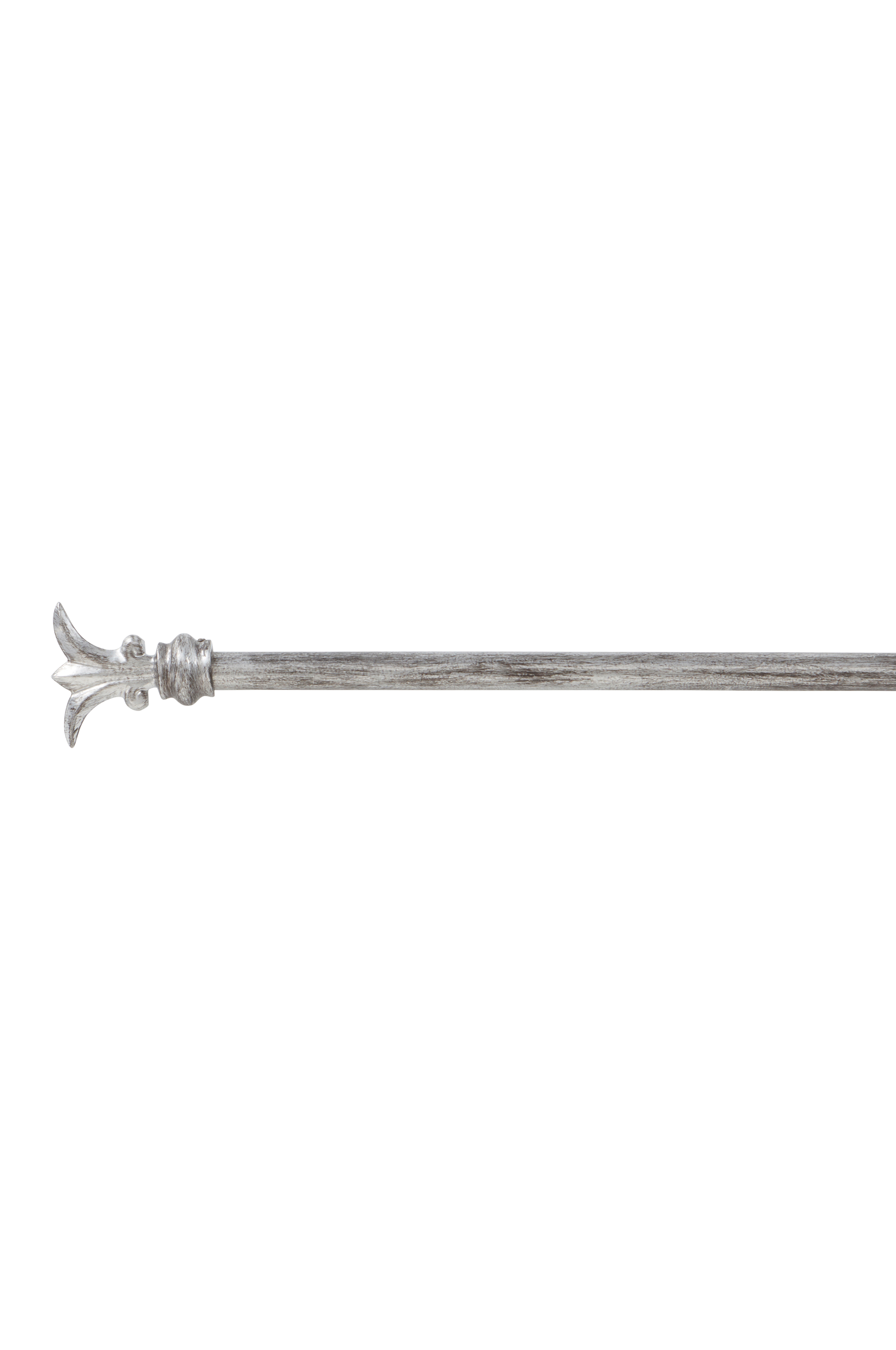Stång i metall med änddekor. Reglerbar 67-180 cm. ø 1,6/1,9 cm. Väggfästen och skruvar ingår. Väggavstånd ca 10 cm. Dekor i metall. 8x7 cm.