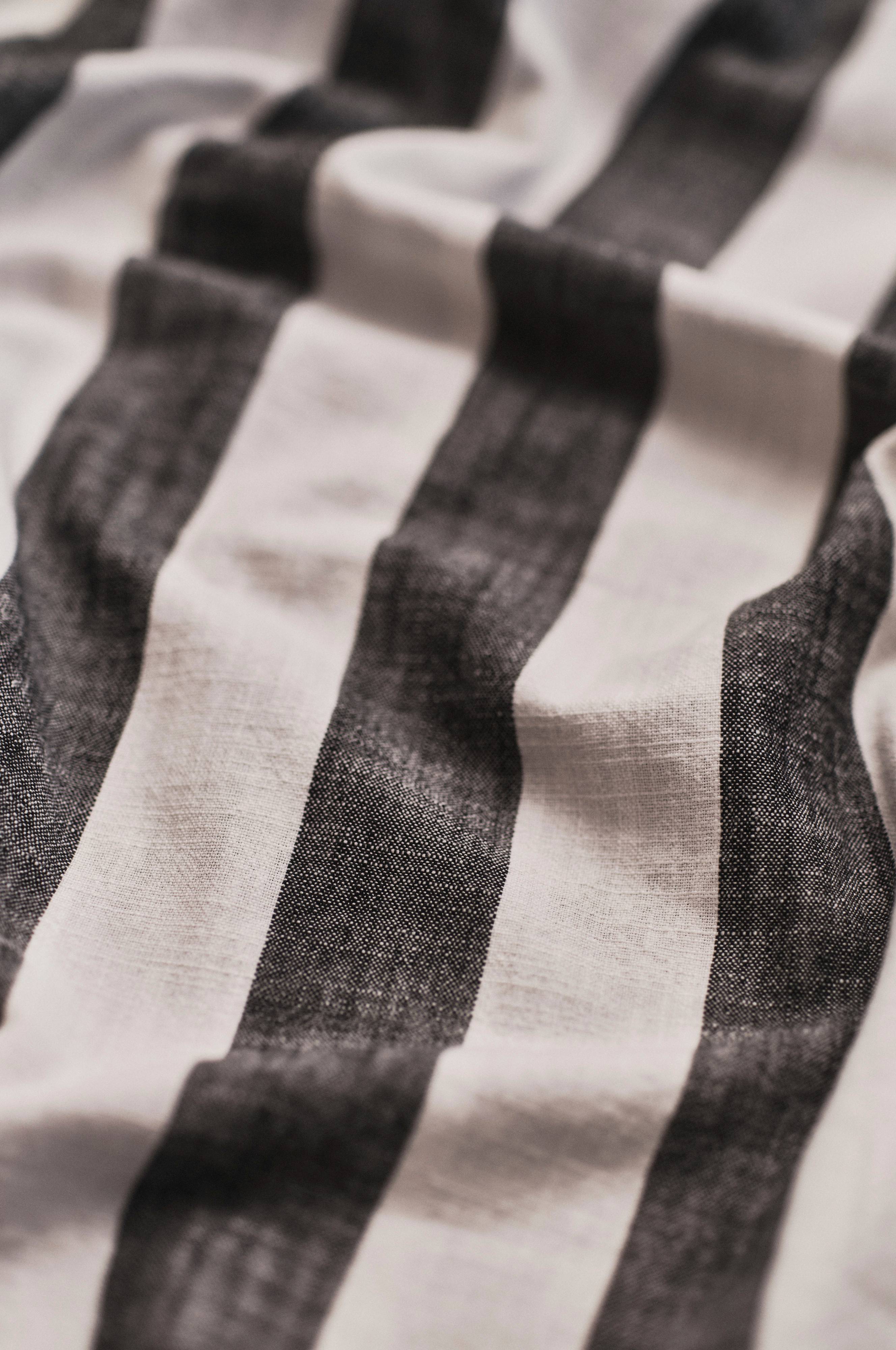 Cafégardinen IRIS ger en charmig vintagekänsla med sina garnfärgade ränder på bomullstyg. Den hänger i fönstrets nederkant och släpper in ljus samtidigt som den ger insynsskydd. Dess mysiga estetik och mjuka textur förbättrar alla rum med ett klassiskt, diskret utseende.