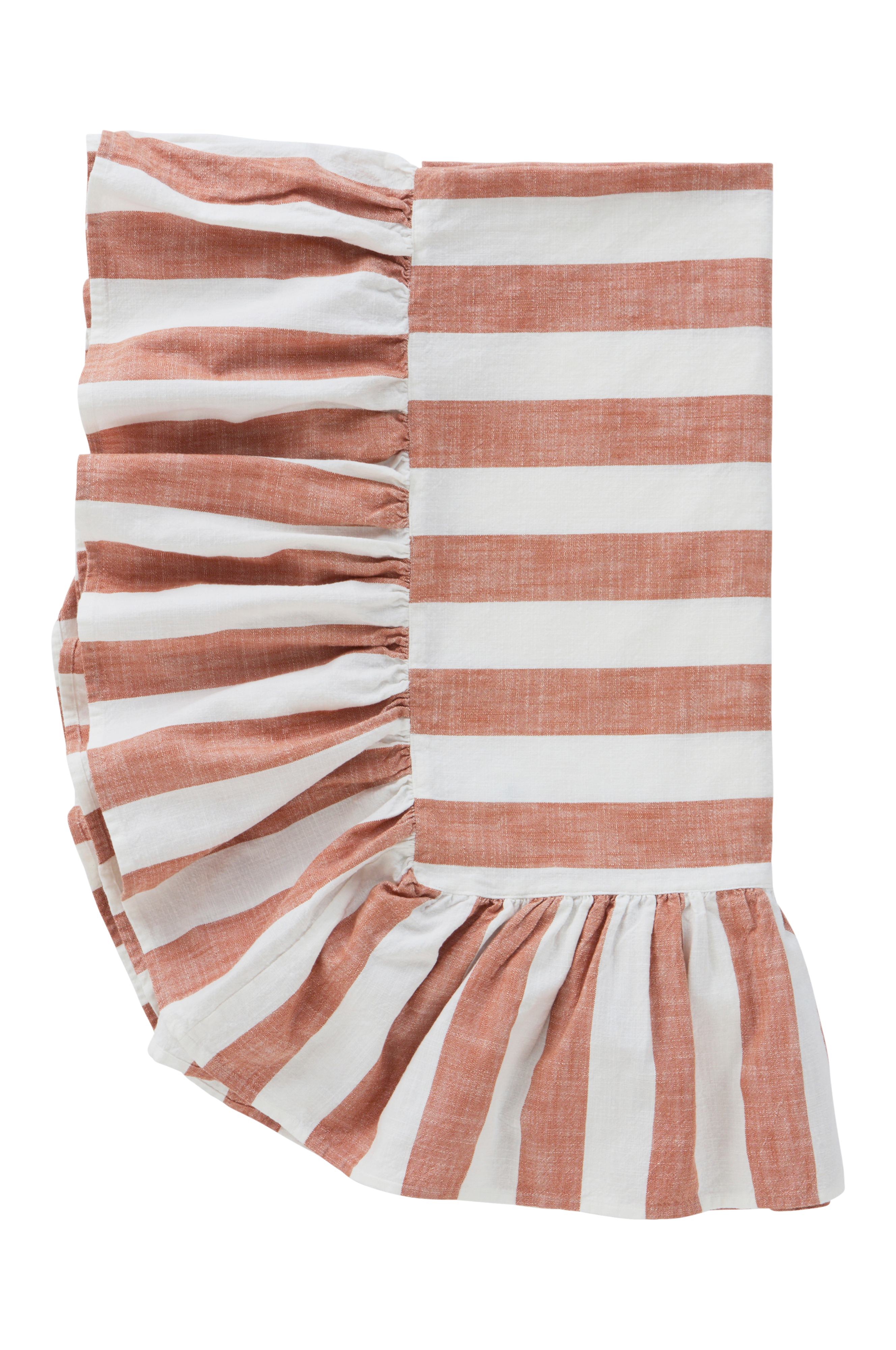 IRIS bordsduk ger en charmig vintagetouch till din matplats. Den är tillverkad av bomullstyg och har en mjuk touch som kompletterar din inredning. Det garnfärgade randiga mönstret och volangen i nederkanten skapar en välkomnande atmosfär för sammankomster. Perfekt för trendentusiaster.