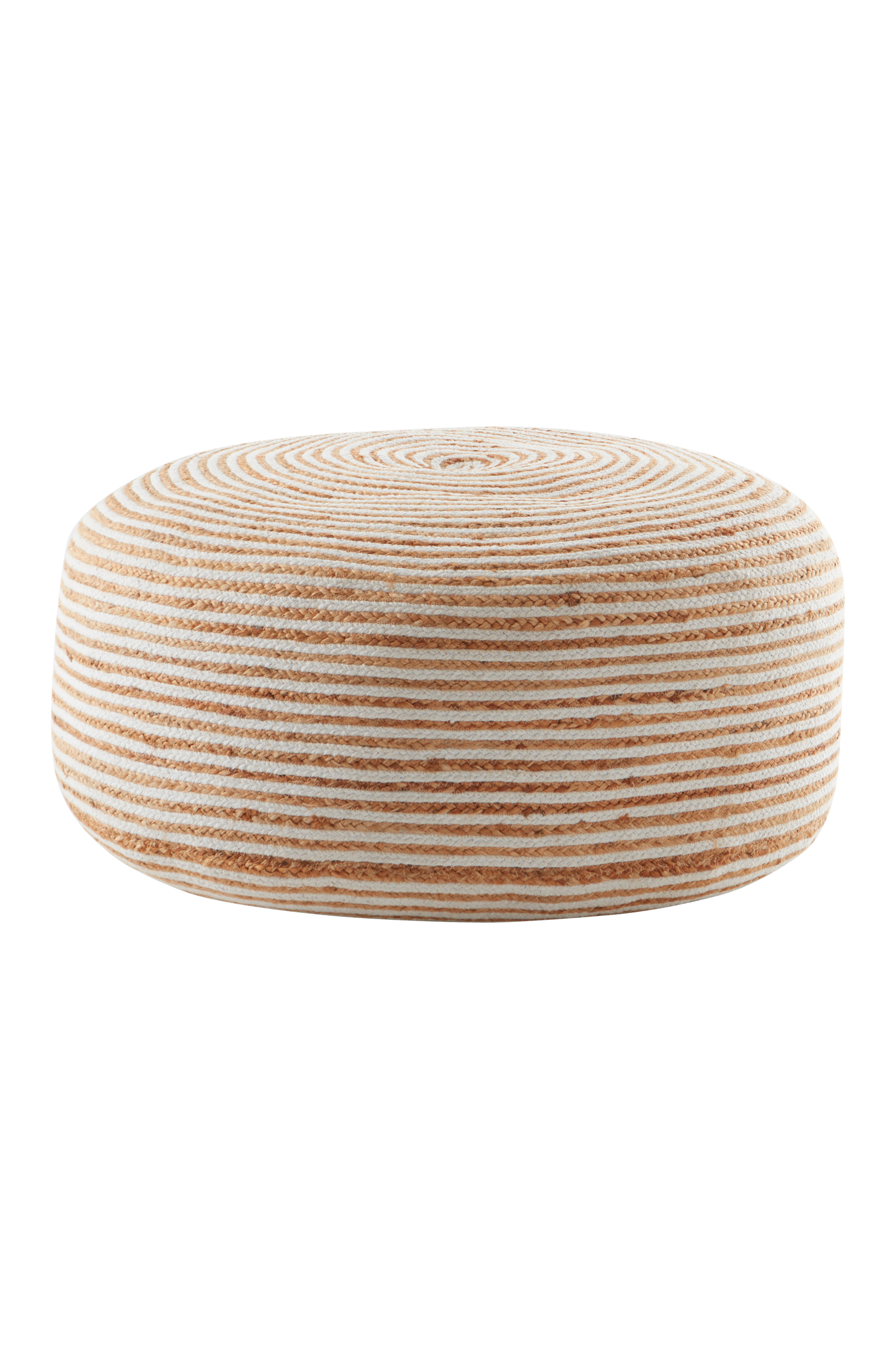 Handvävd sittpuff av jute och bomull med fyllning av cellplastkulor som gör den lagom mjuk. Puffen får en härligt naturlig känsla tack vare materialet av jute och bomull som känns äkta och naturnära. Det fina hantverket gör varje sittpuff unik. Klädseln är inte avtagbar.