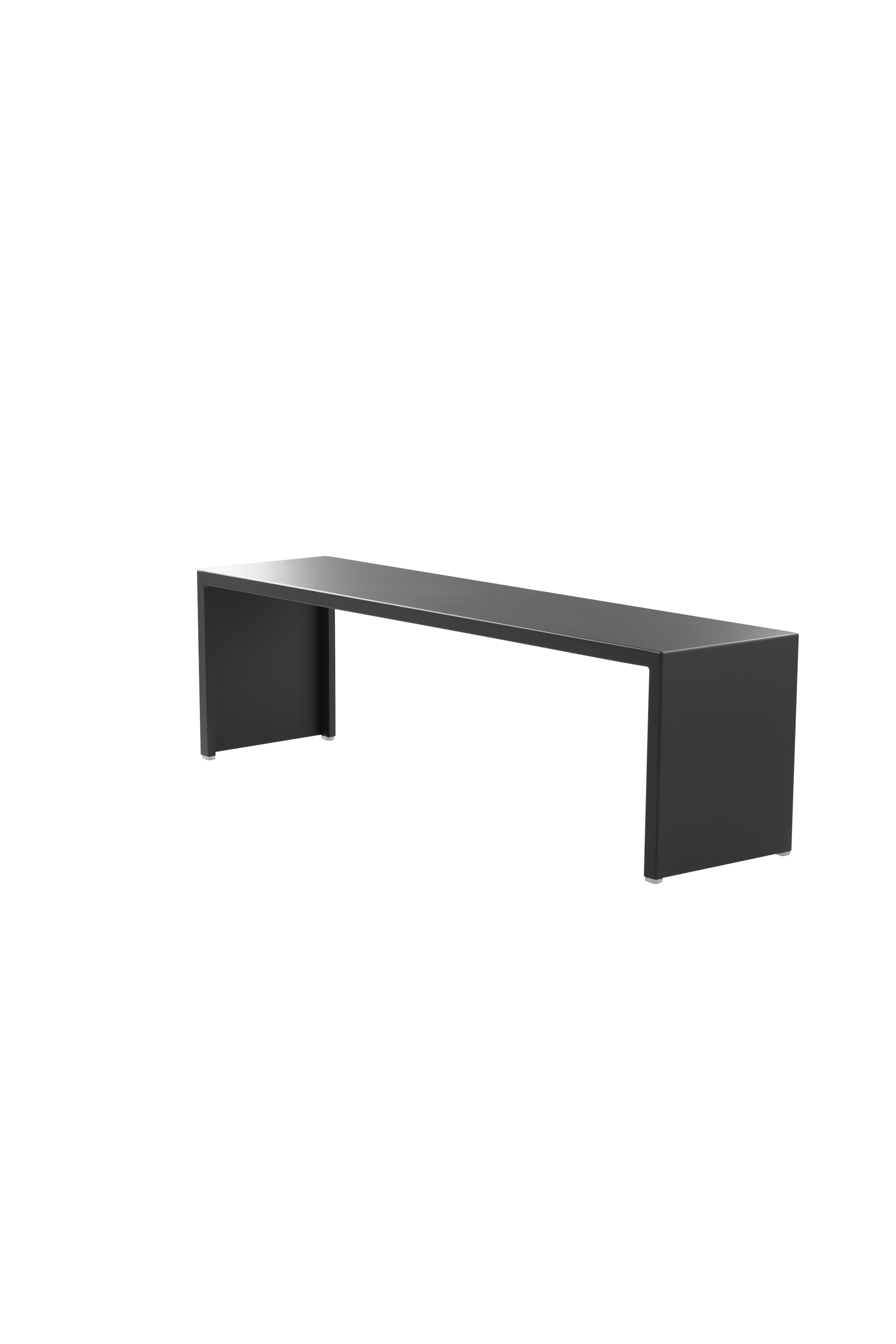 Bänk av pulverlackerad aluminium. En stilren, rak bänk som är användbar till mycket, allt från sittplats utanför entrén till bänk vid matbordet på altanen. JARDIN tål att förvaras utomhus, aluminium rostar inte. Låg vikt.