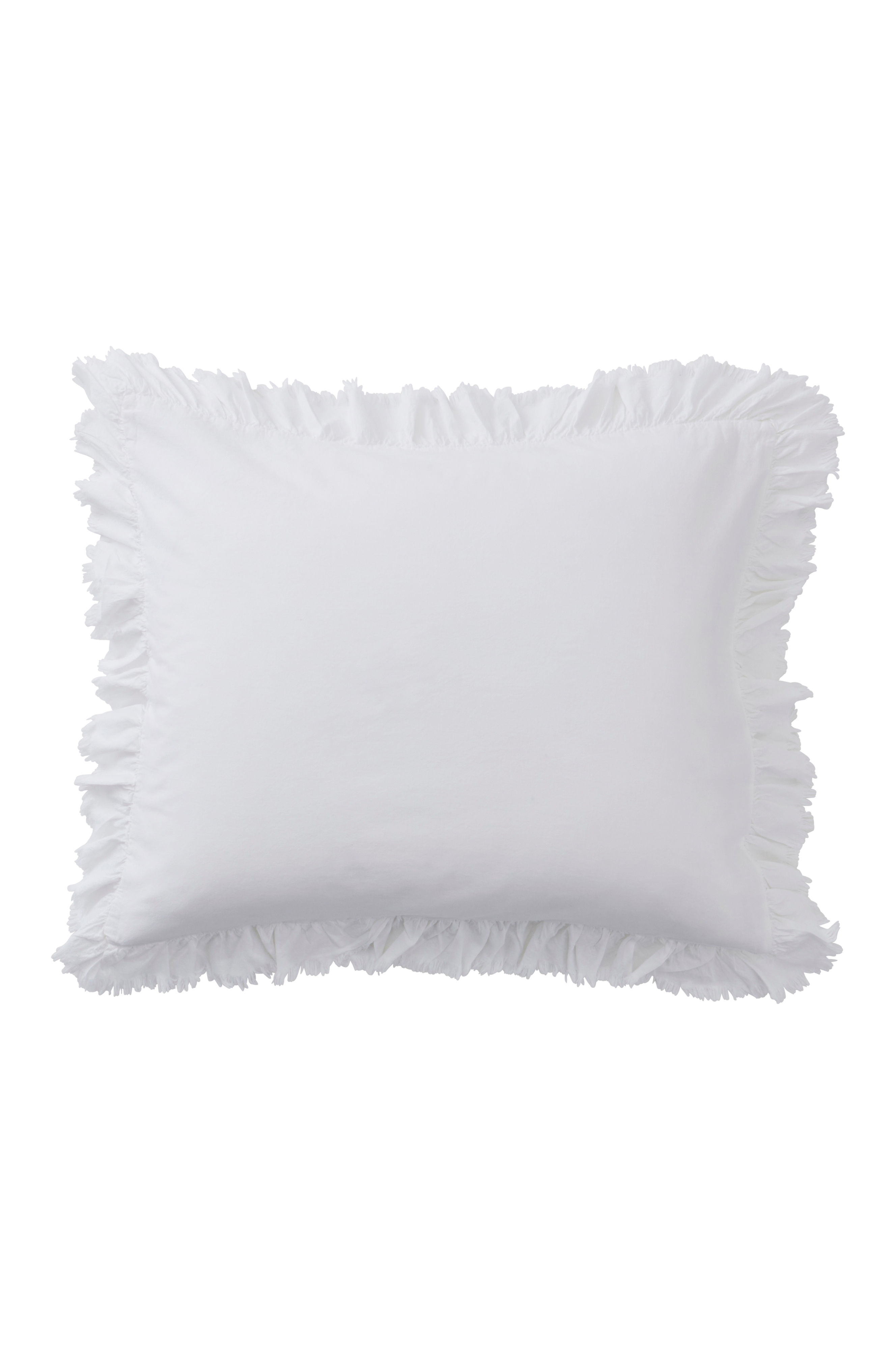 Örngott av tvättad bomull med mjuk känsla. Bomull är behagligt att bädda med och upplevs svalt och skönt mot huden. JINN har en lätt fransig volangkant runt om. Trådtäthet på 144 tc. (Trådtätheten talar om antalet trådar, thread counts, per kvadrattum i ett tyg. Ju högre trådtäthet desto högre kvalité.)